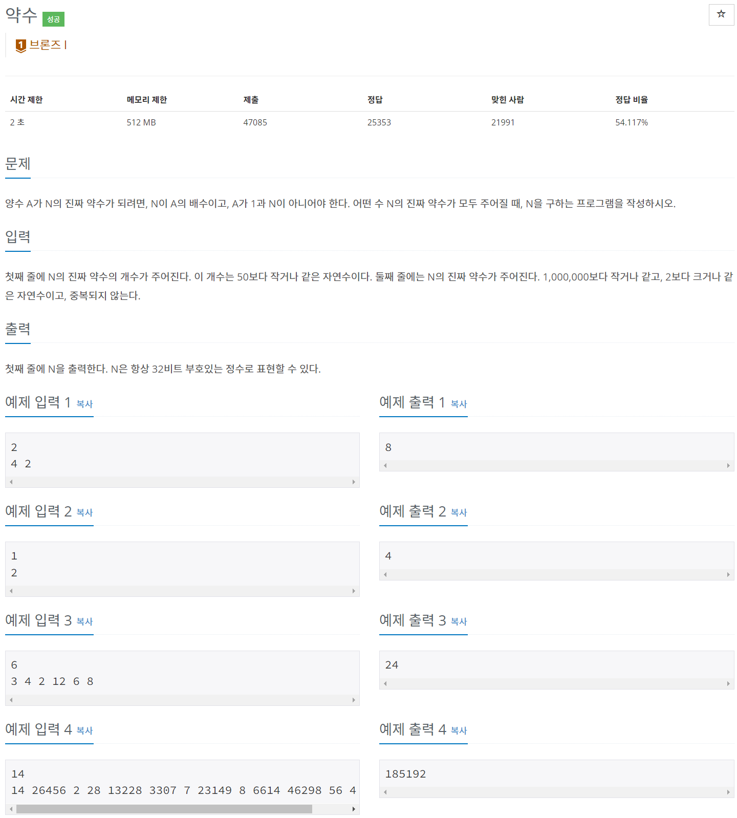 백준 BAEKJOON 1037번 약수 [PYTHON/파이썬]