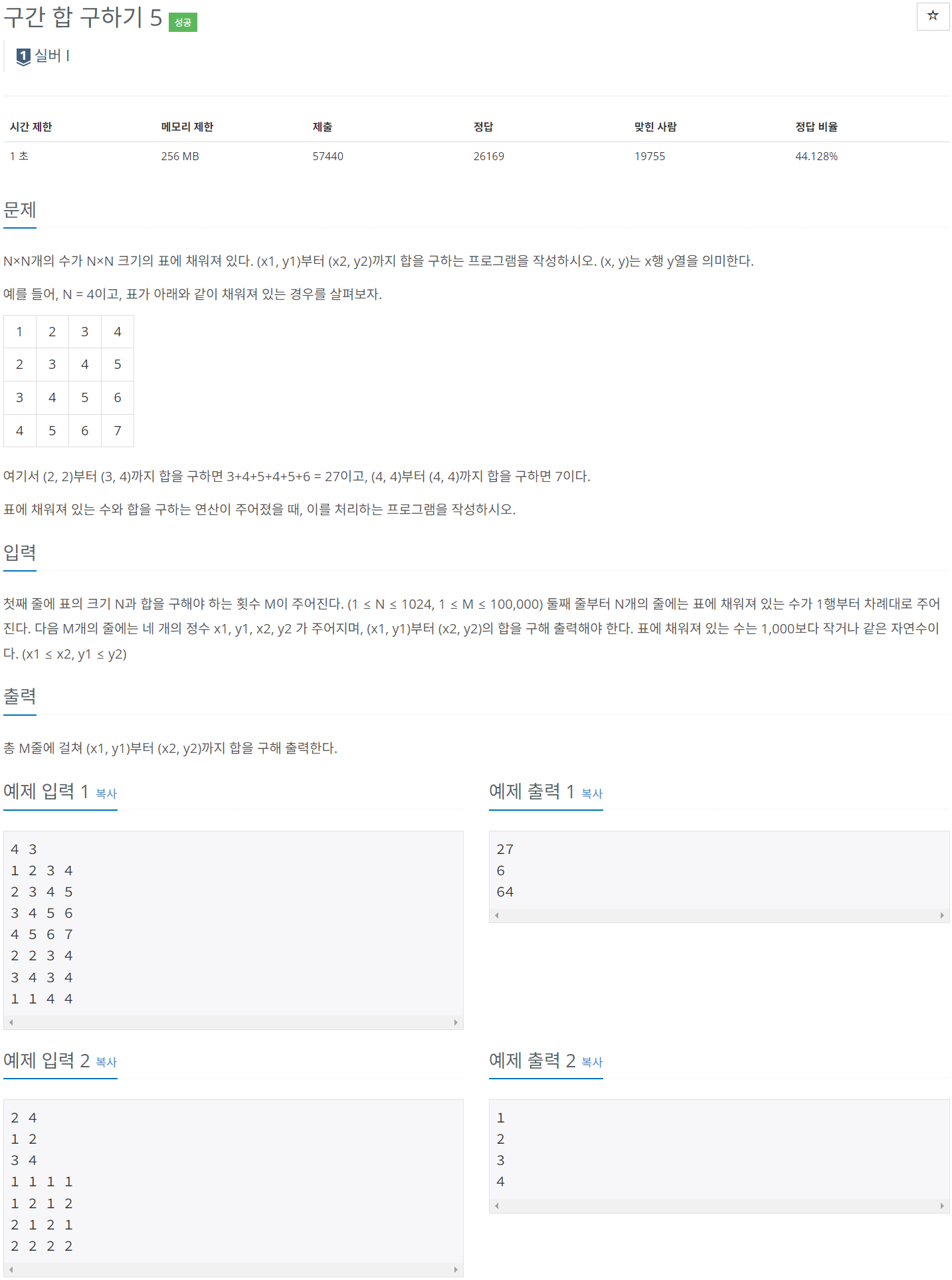 # (x1, y1), (x2, y2)의 구간 합 구하기