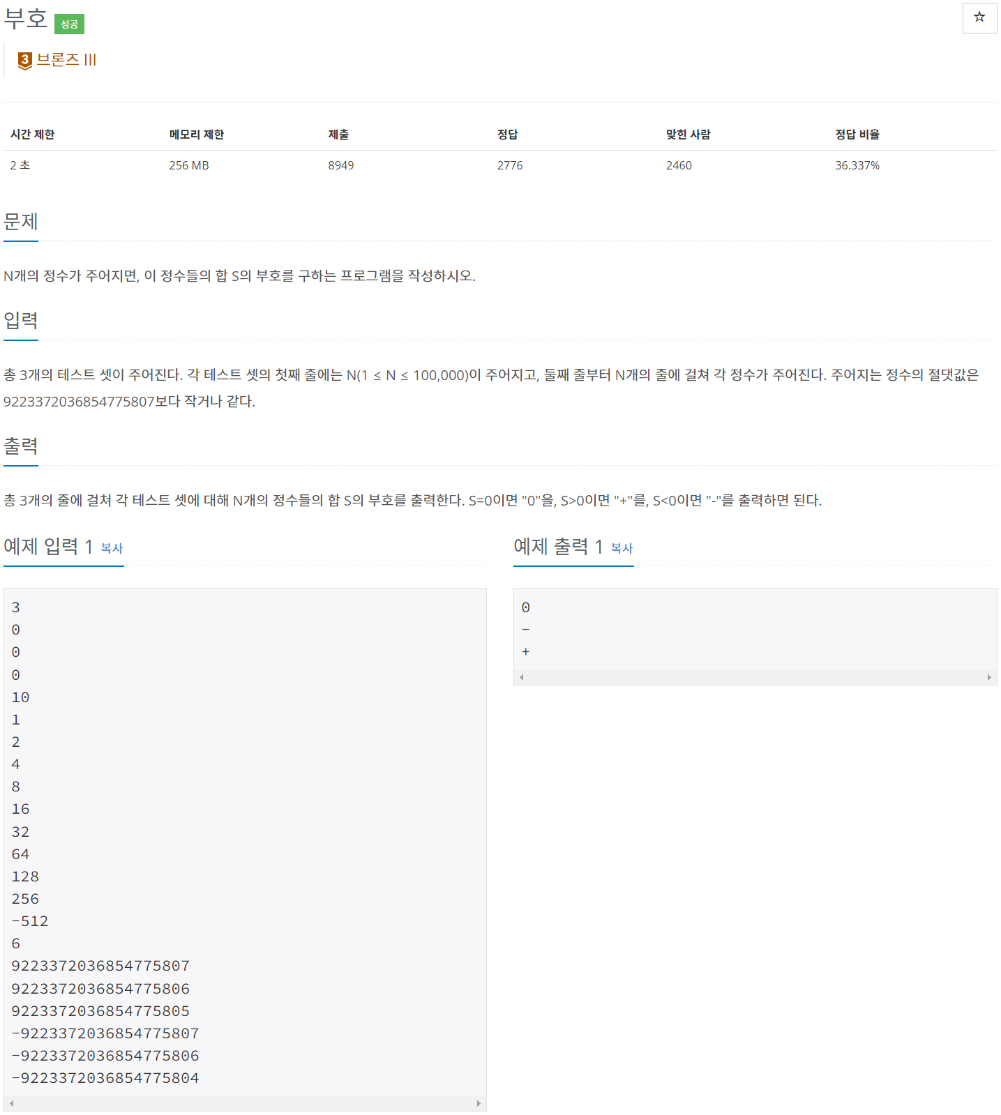 백준 BAEKJOON 1247번 부호 [PYTHON/파이썬]