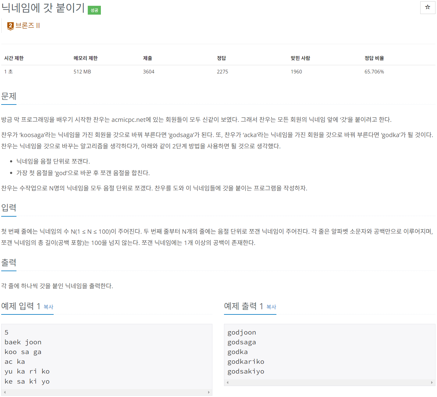 백준 BAEKJOON 13163번 닉네임에 갓 붙이기 [PYTHON/파이썬]