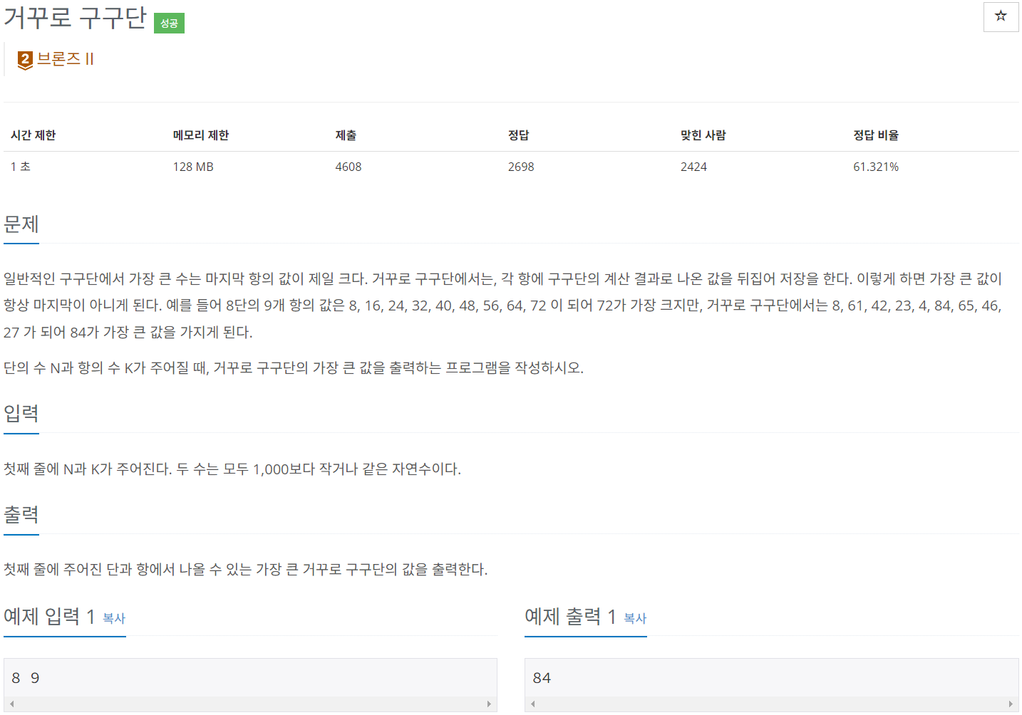 백준 BAEKJOON 13410번 거꾸로 구구단 [PYTHON/파이썬]