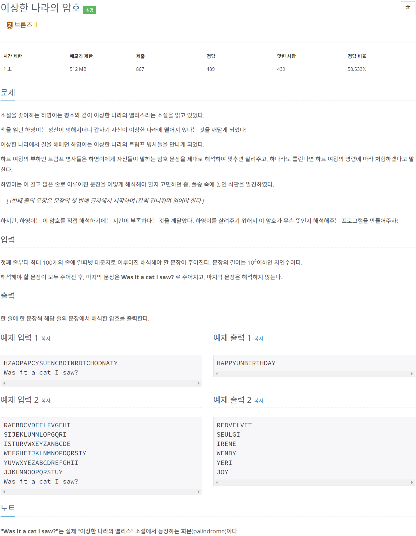 백준 BAEKJOON 18245번 이상한 나라의 암호 [PYTHON/파이썬]