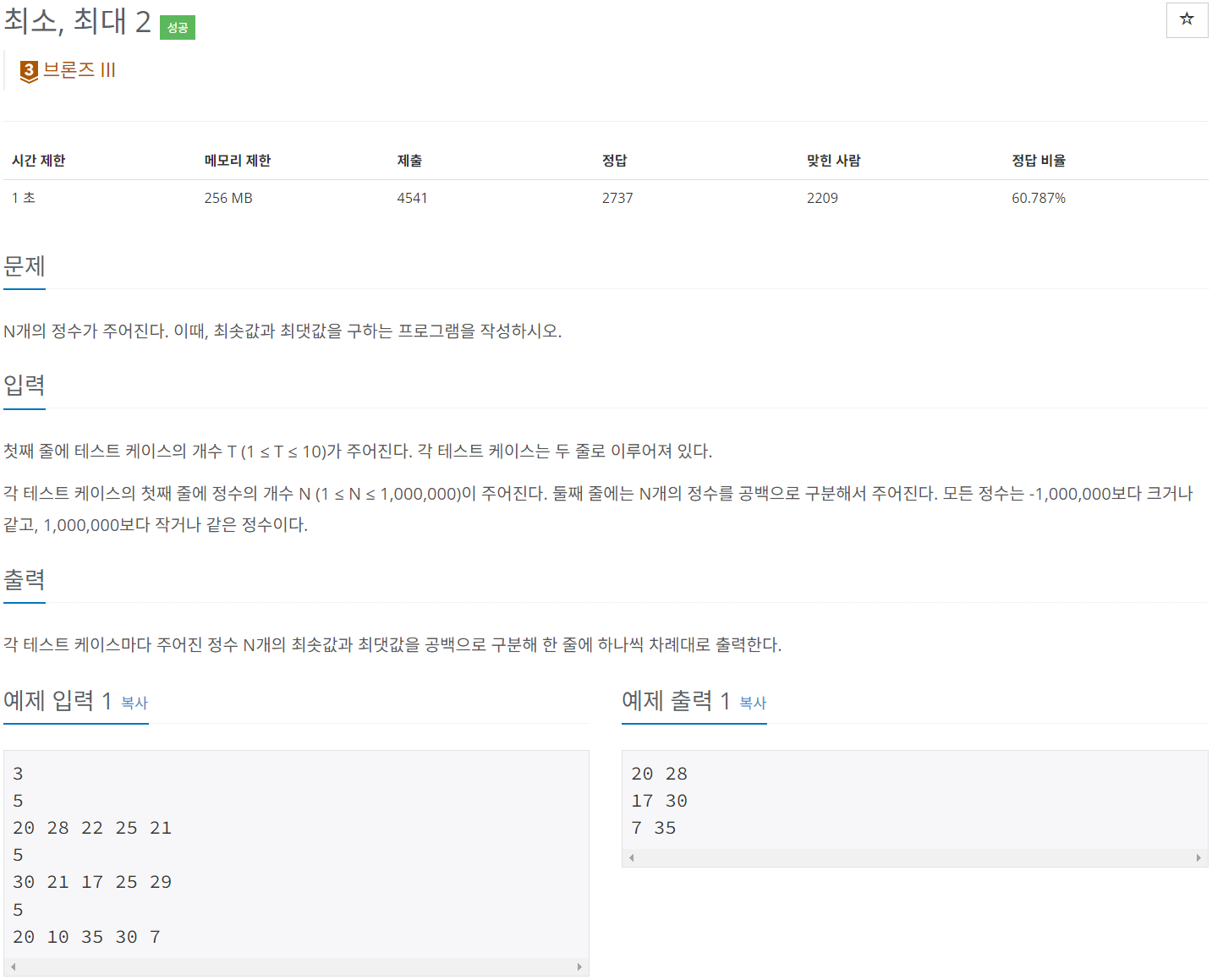 N개의 정수가 주어진다. 이때, 최솟값과 최댓값을 구하는 프로그램을 작성하시오.