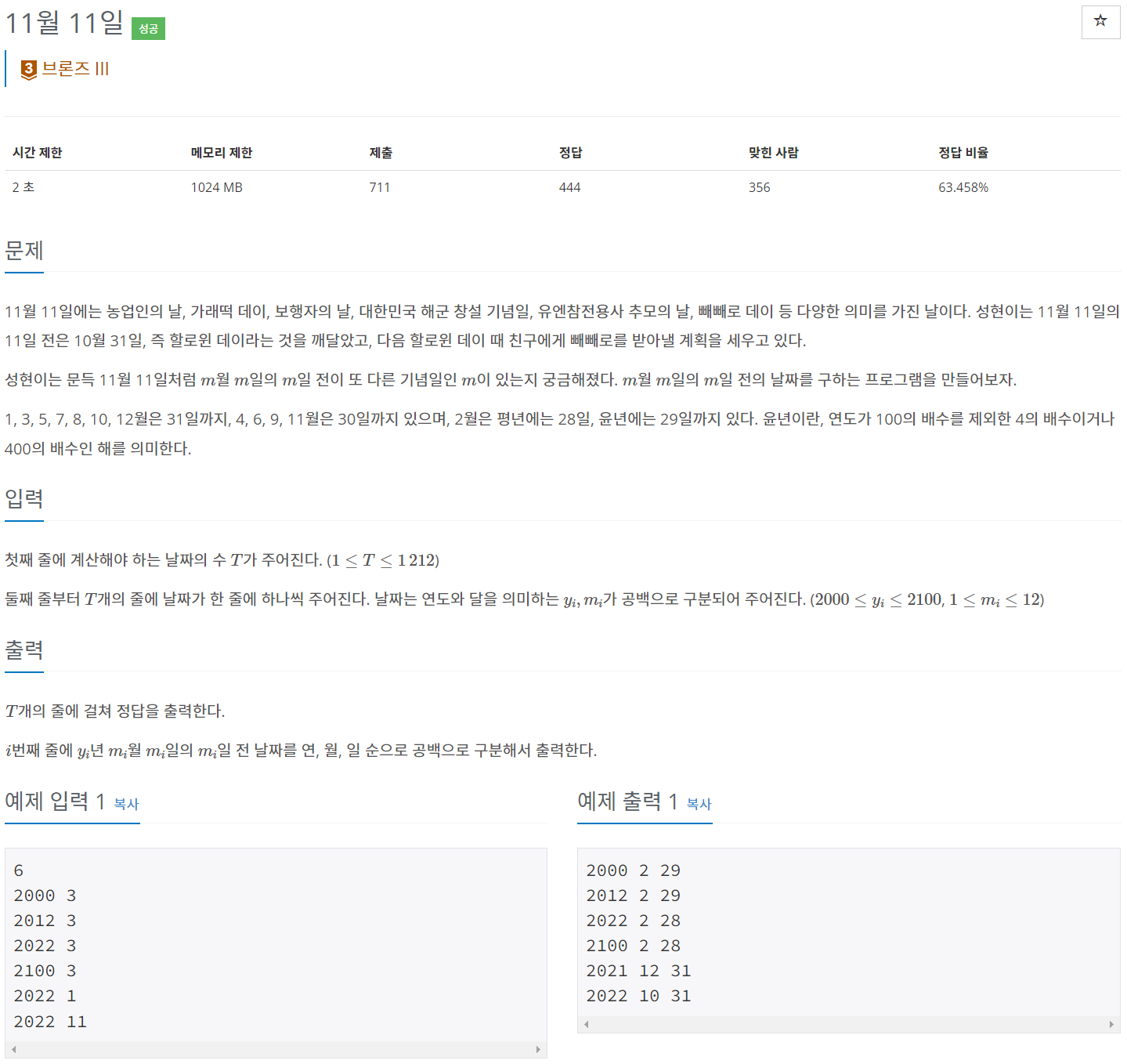 print(y, m-1, days[m-2])'ALGORITHM > PYTHON' 카테고리의 다른 글