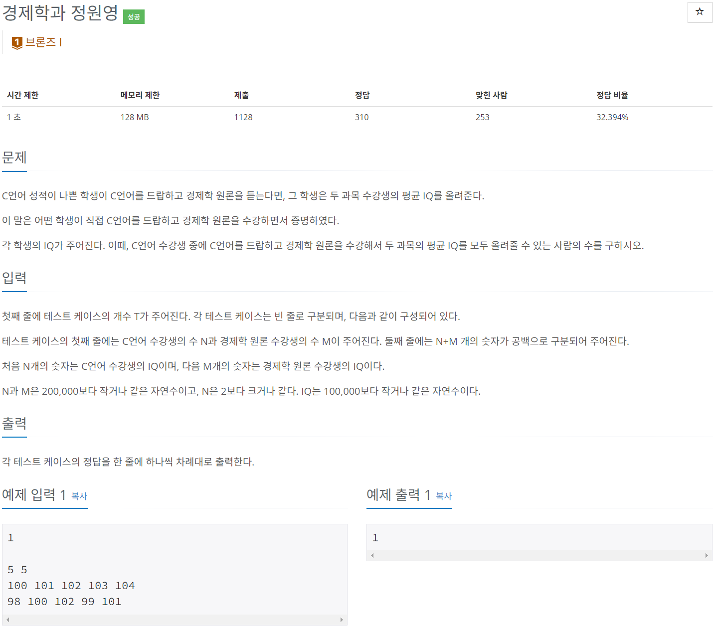 백준 BAEKJOON 2546번 경제학과 정원영 [PYTHON/파이썬]