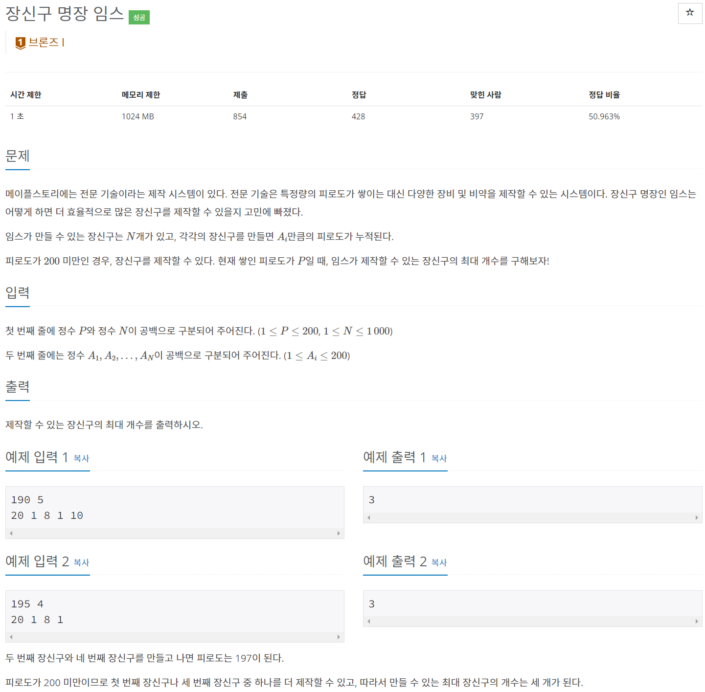 백준 BAEKJOON 25496번 장신구 명장 임스 [PYTHON/파이썬]