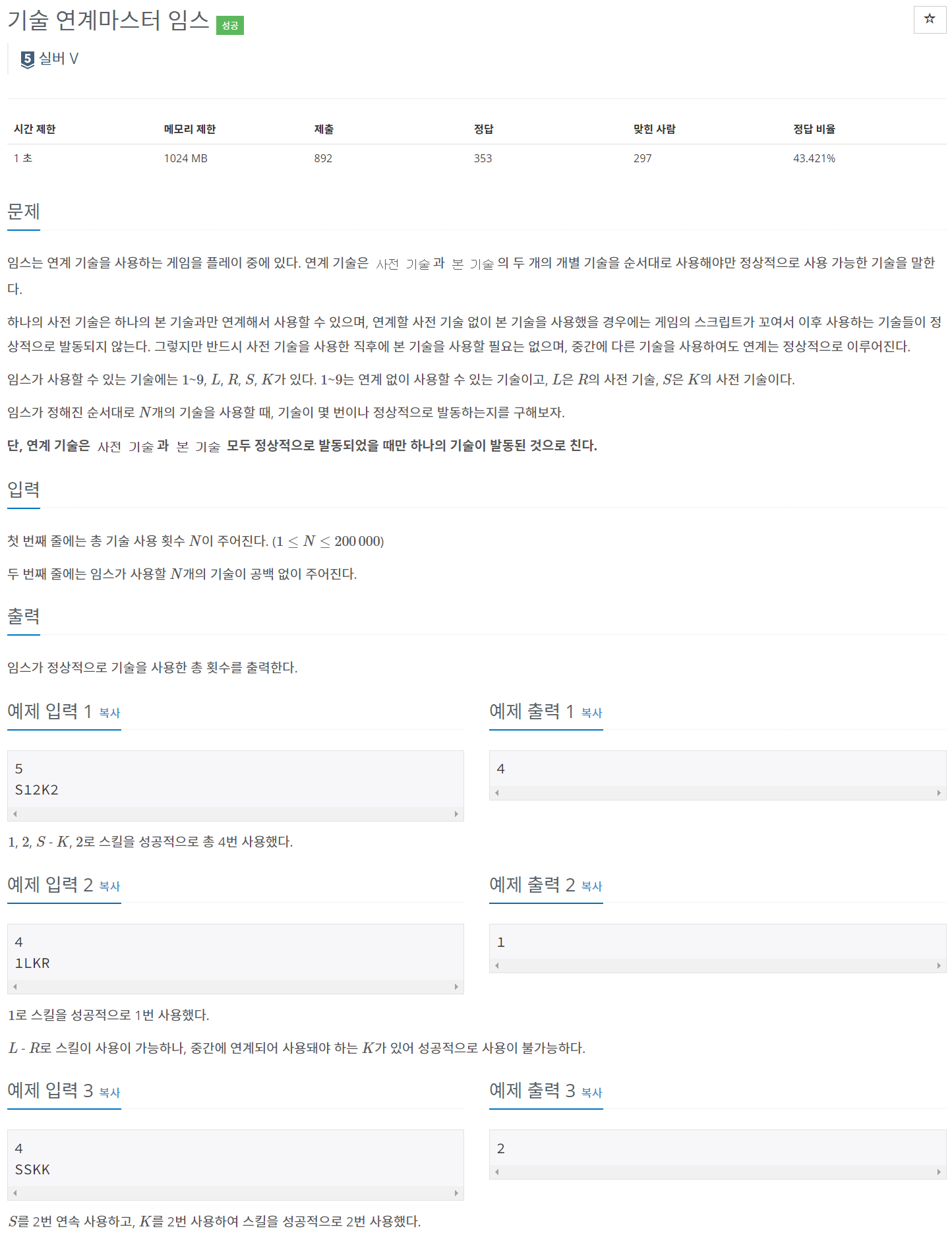 백준 BAEKJOON 25497번 기술 연계마스터 임스 [PYTHON/파이썬]