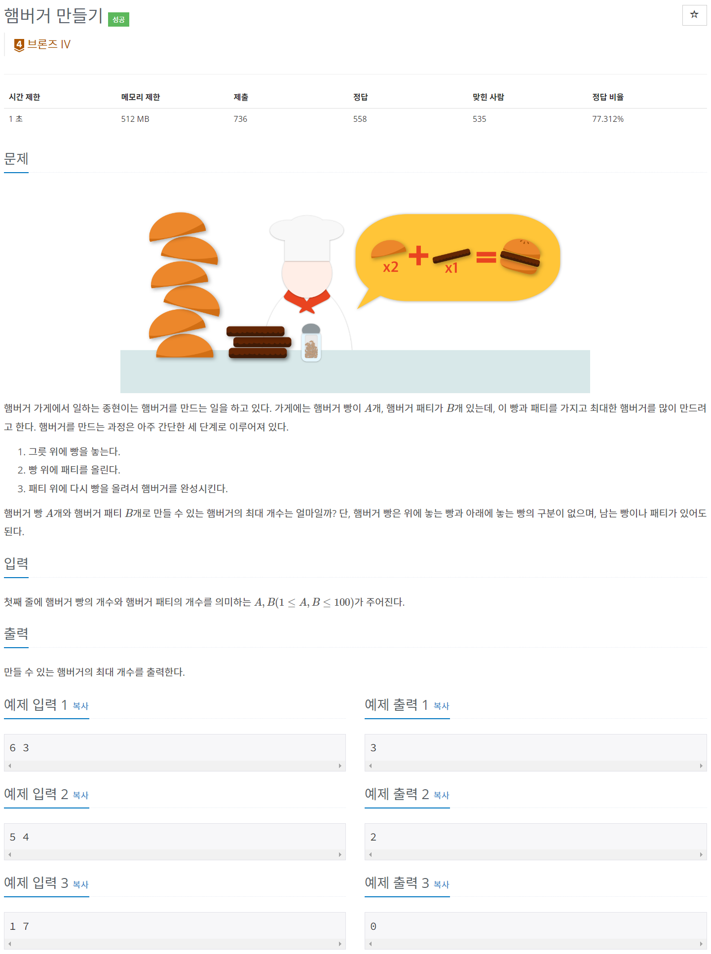 백준 BAEKJOON 25628번 햄버거 만들기 [PYTHON/파이썬]
