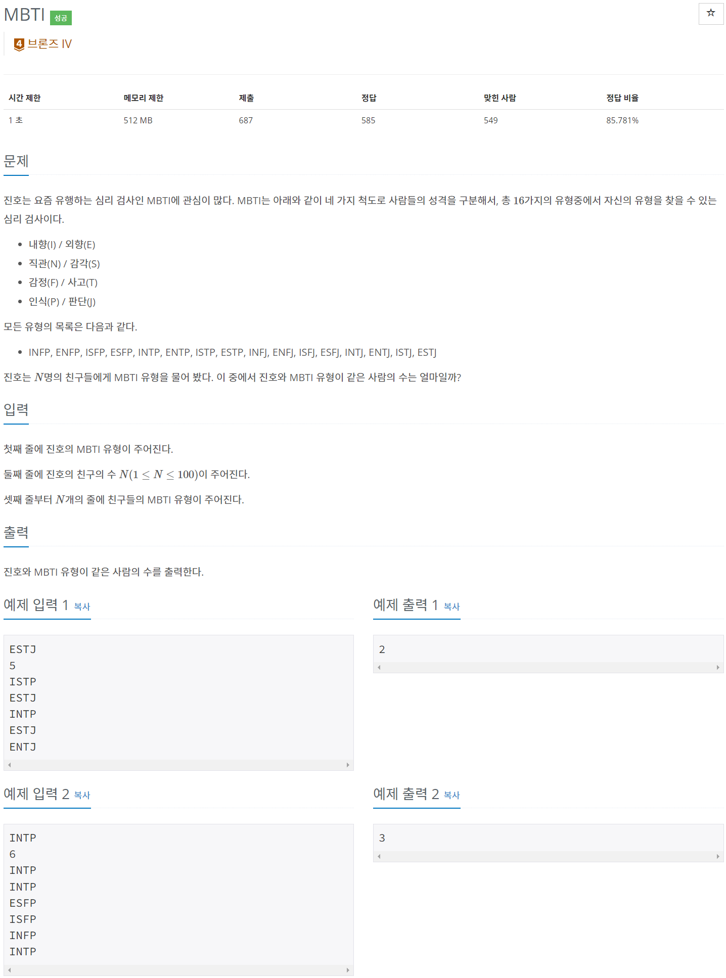 백준 BAEKJOON 25640번 MBTI [PYTHON/파이썬]
