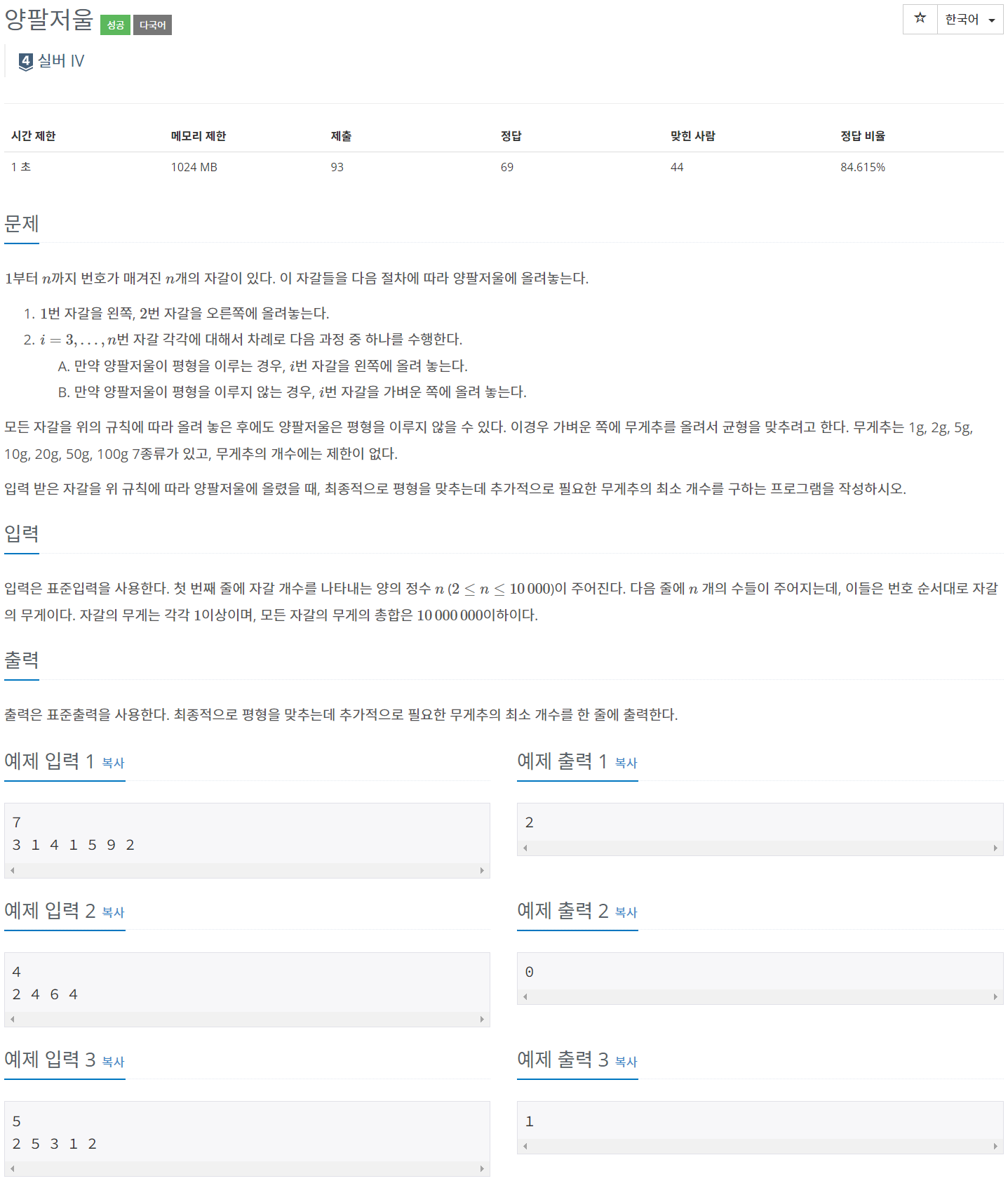 백준 BAEKJOON 25943번 양팔저울 [PYTHON/파이썬]