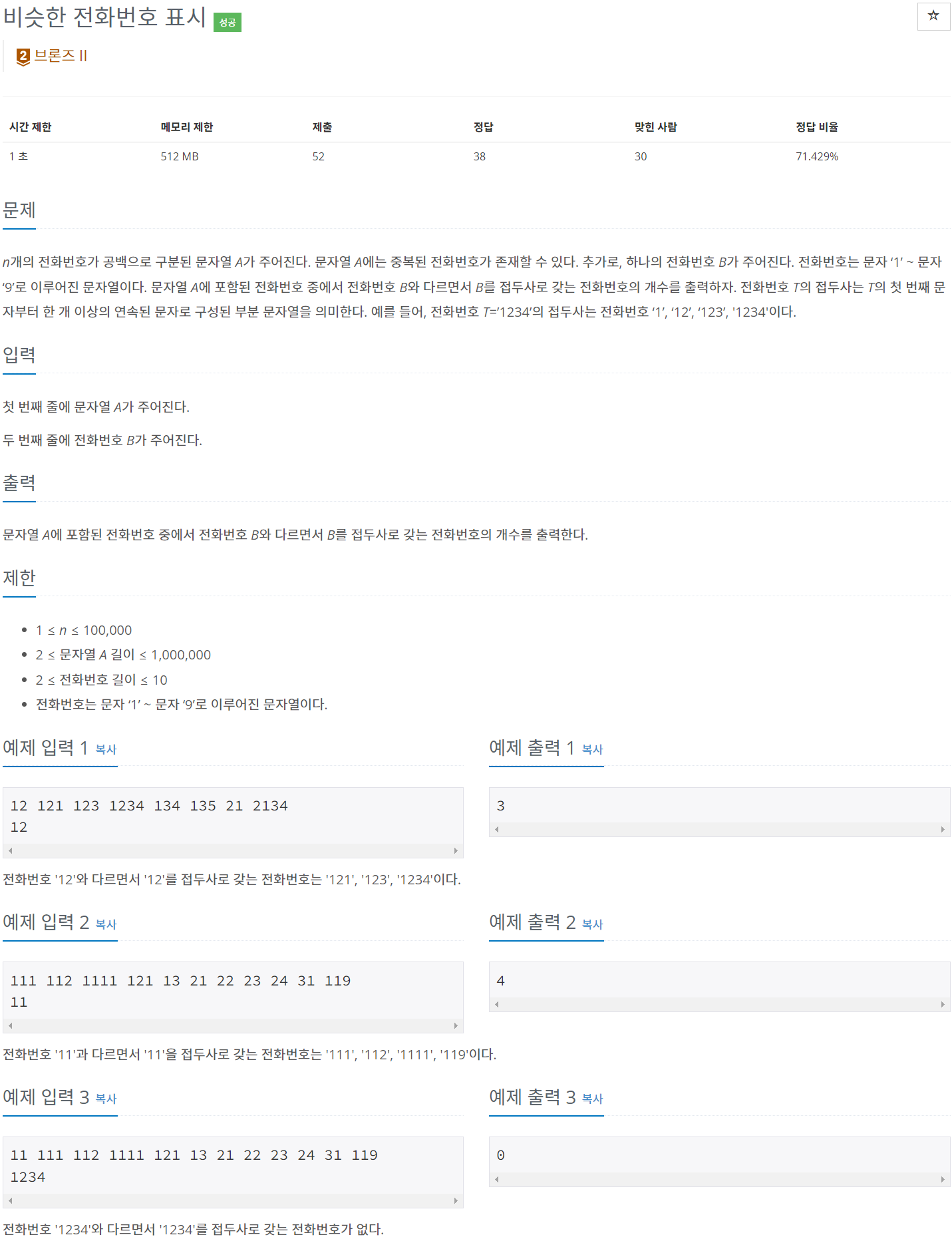 n개의 전화번호가 공백으로 구분된 문자열 A가 주어진다. 문자열 A에는 중복된 전화번호가 존재할 수 있다. 추가로, 하나의 전화번호 B가 주어진다. 전화번호는 문자 ‘1’ ~ 문자 ‘9’로 이루어