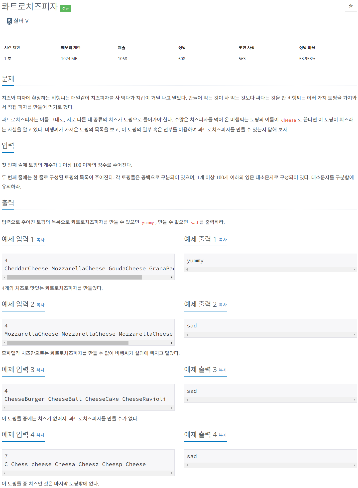 백준 BAEKJOON 27964번 콰트로치즈피자 [PYTHON/파이썬]