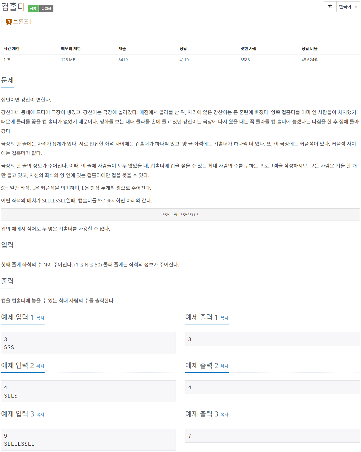 백준 BAEKJOON 2810번 컵홀더 [PYTHON/파이썬]