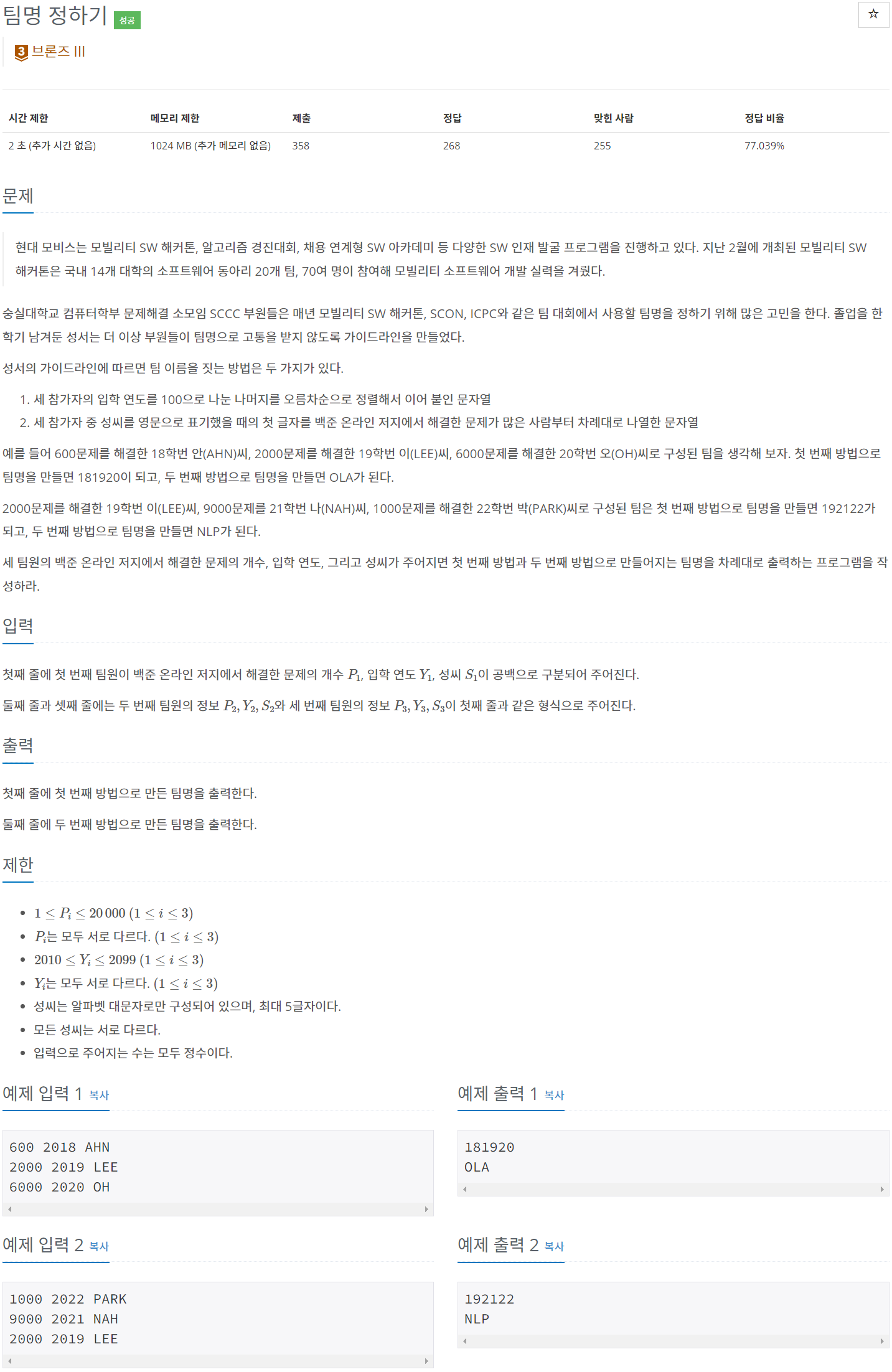 백준 BAEKJOON 28114번 팀명 정하기 [PYTHON/파이썬]