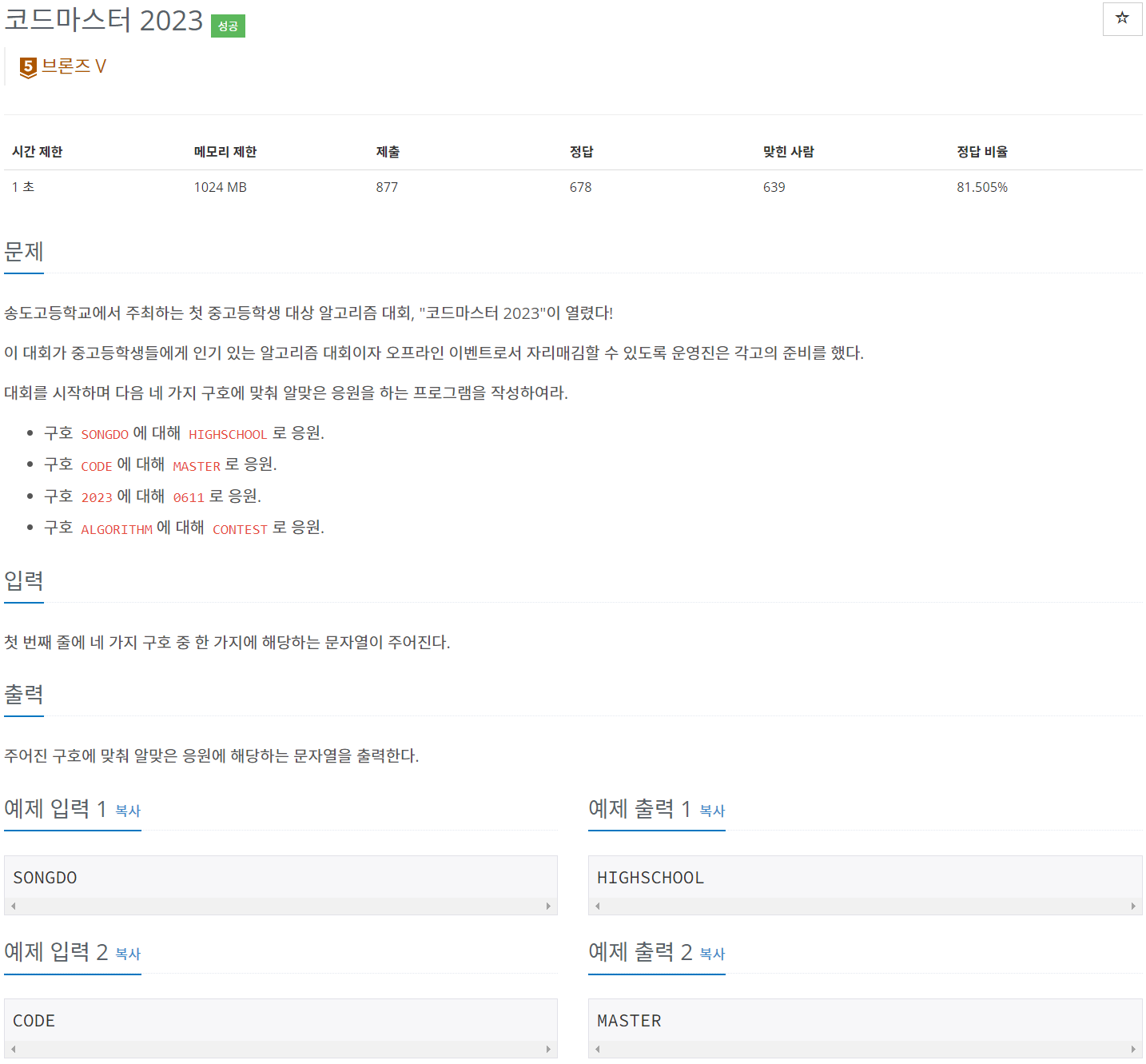 백준 BAEKJOON 28235번 코드마스터 2023 [PYTHON/파이썬]