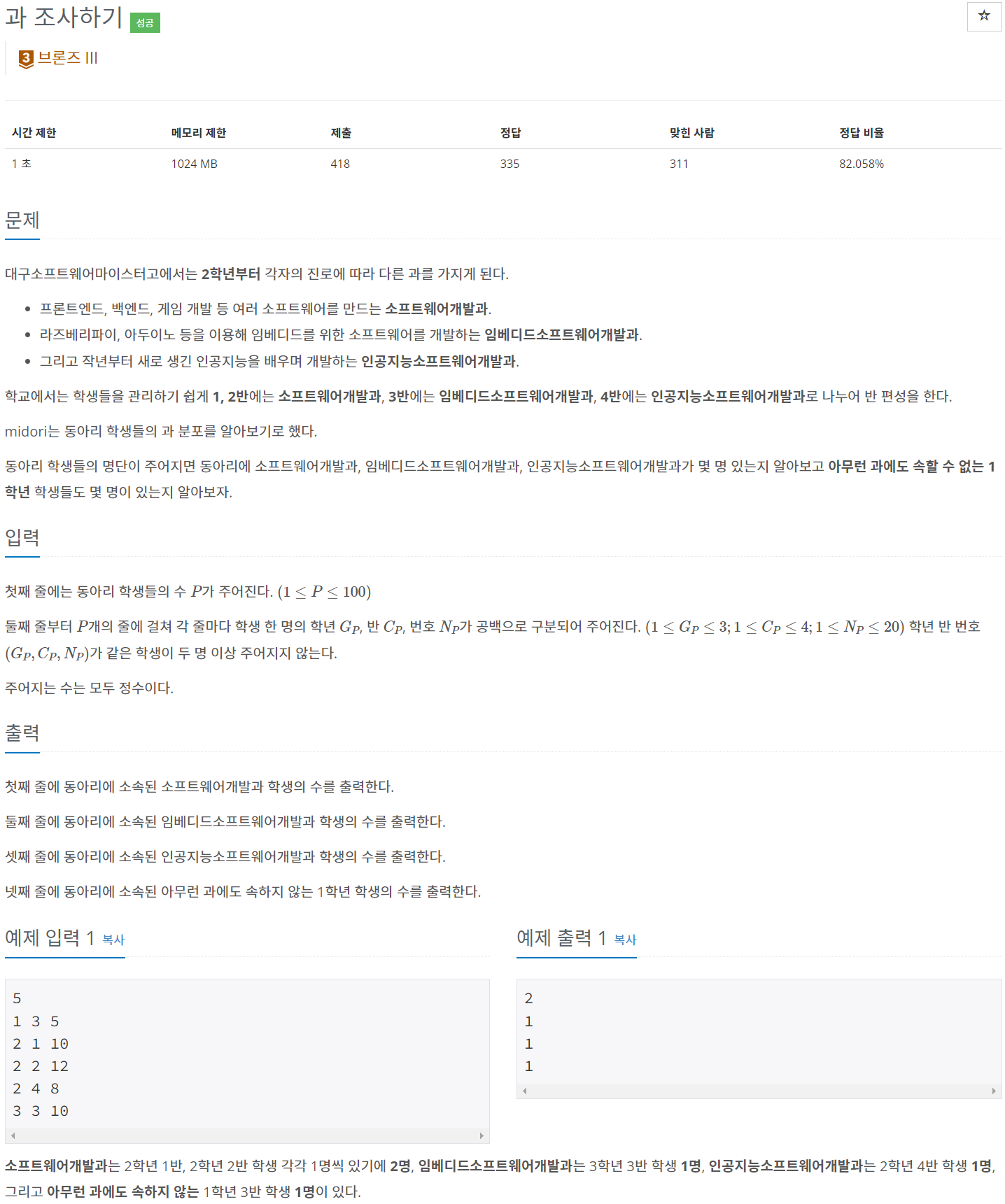 백준 BAEKJOON 28289번 과 조사하기 [PYTHON/파이썬]