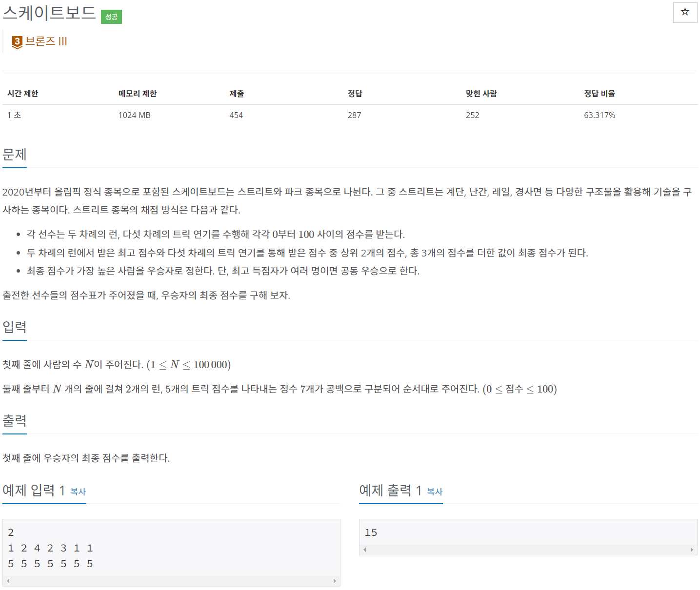 백준 BAEKJOON 28417번 스케이트보드 [PYTHON/파이썬]