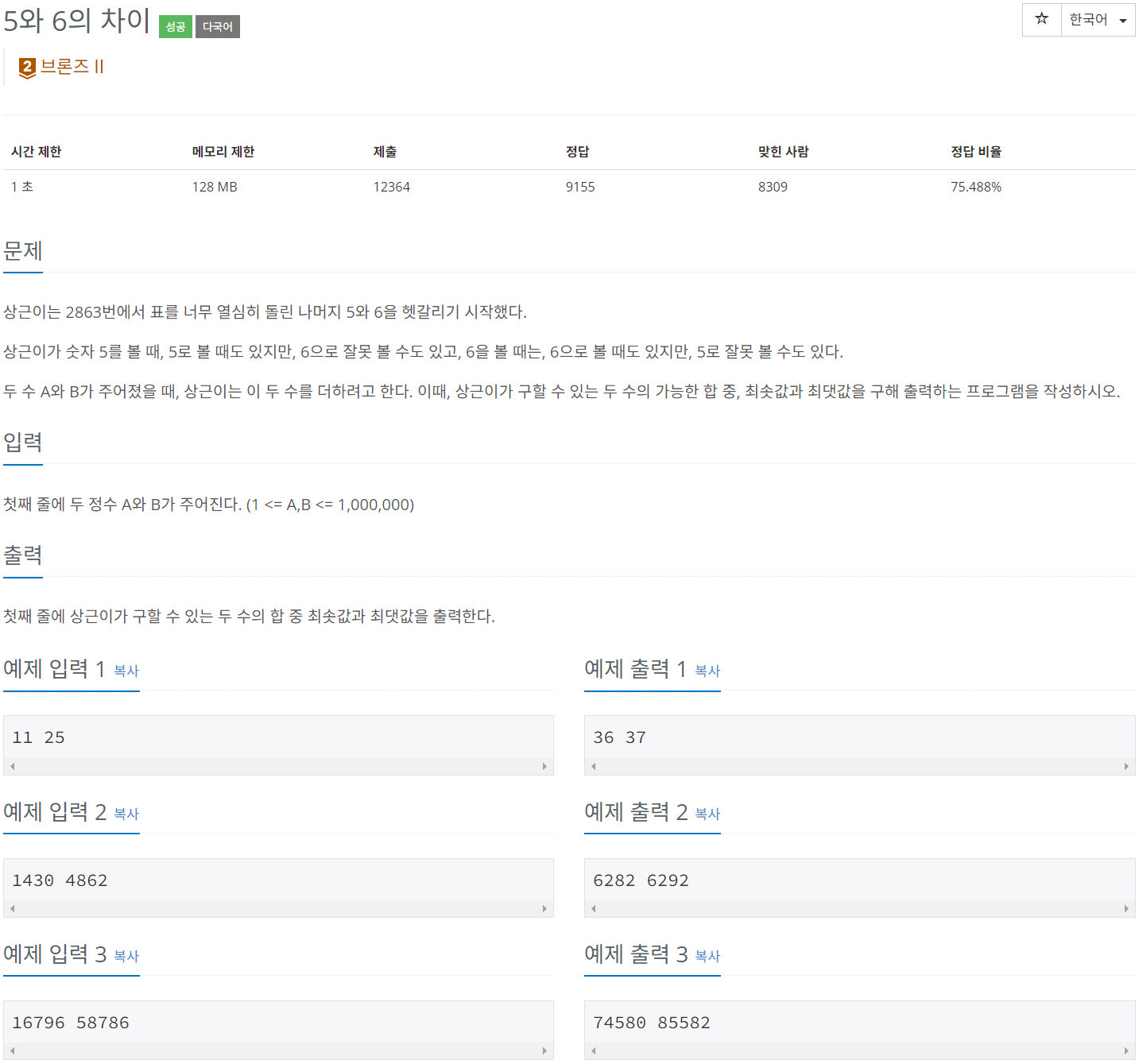 백준 BAEKJOON 2864번 5와 6의 차이 [PYTHON/파이썬]