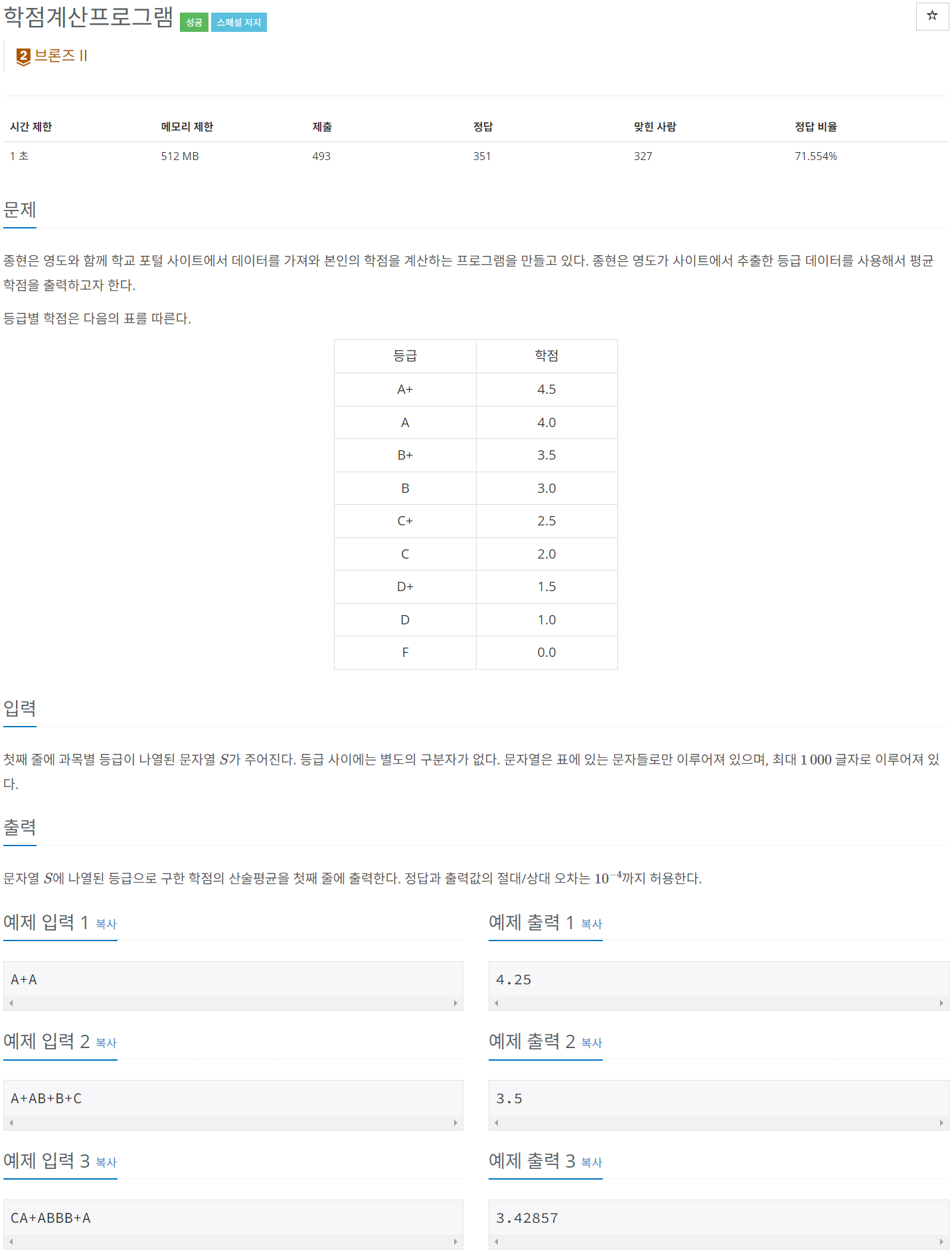 백준 BAEKJOON 29614번 학점계산프로그램 [PYTHON/파이썬]