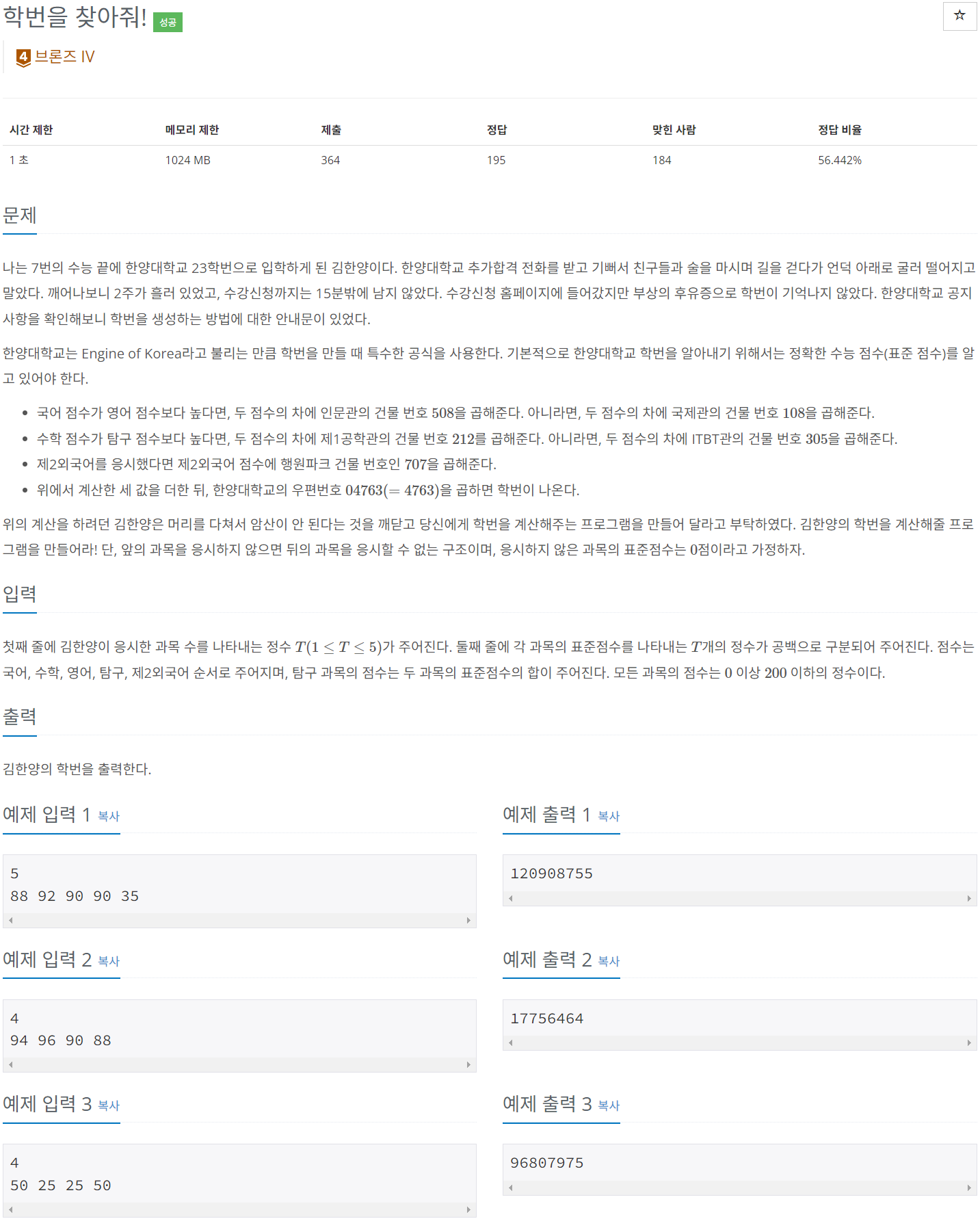백준 BAEKJOON 29807번 학번을 찾아줘! [PYTHON/파이썬]