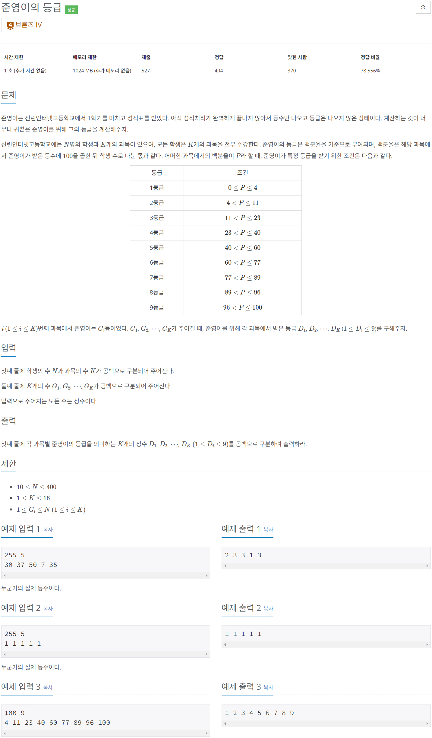 30008번: 준영이의 등급