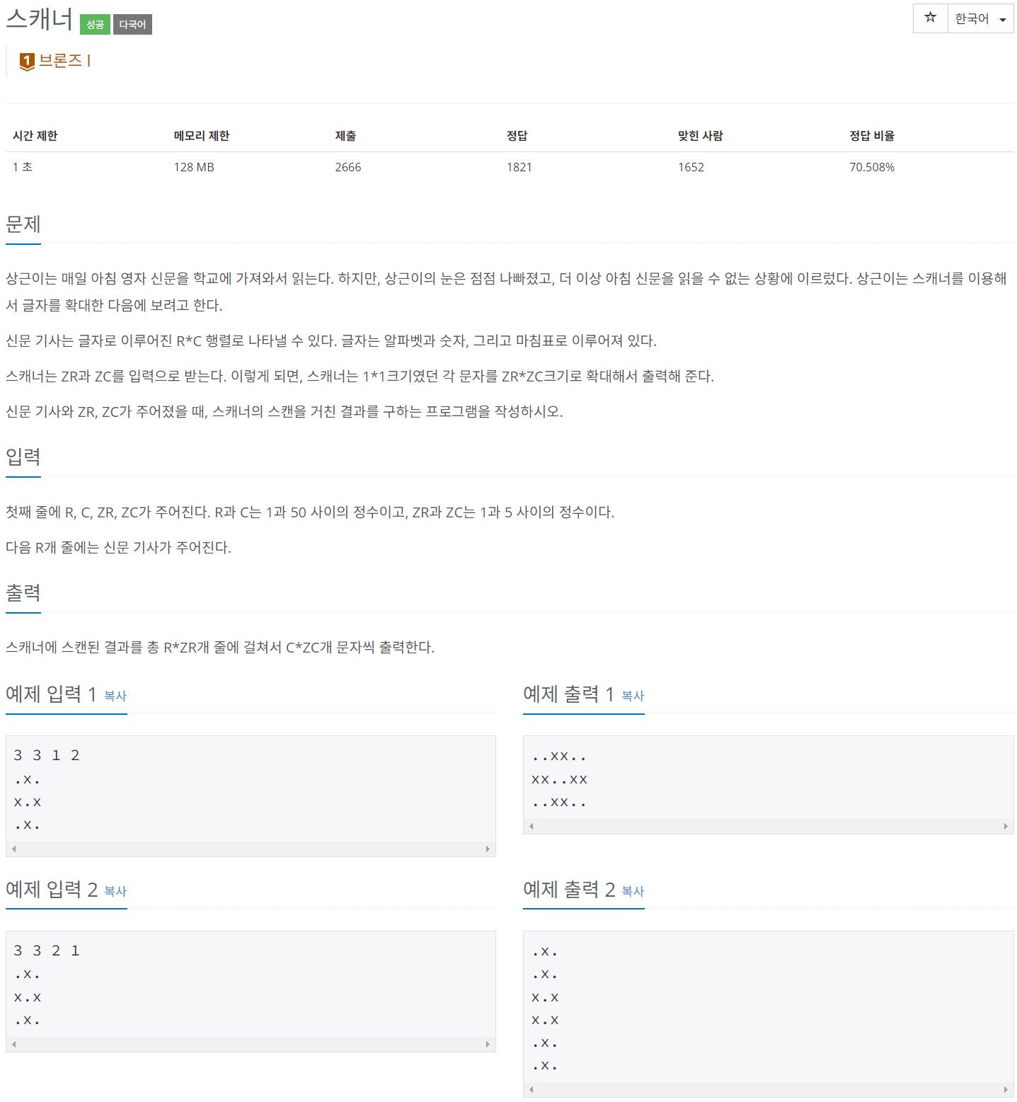 백준 BAEKJOON 3035번 스캐너 [PYTHON/파이썬]