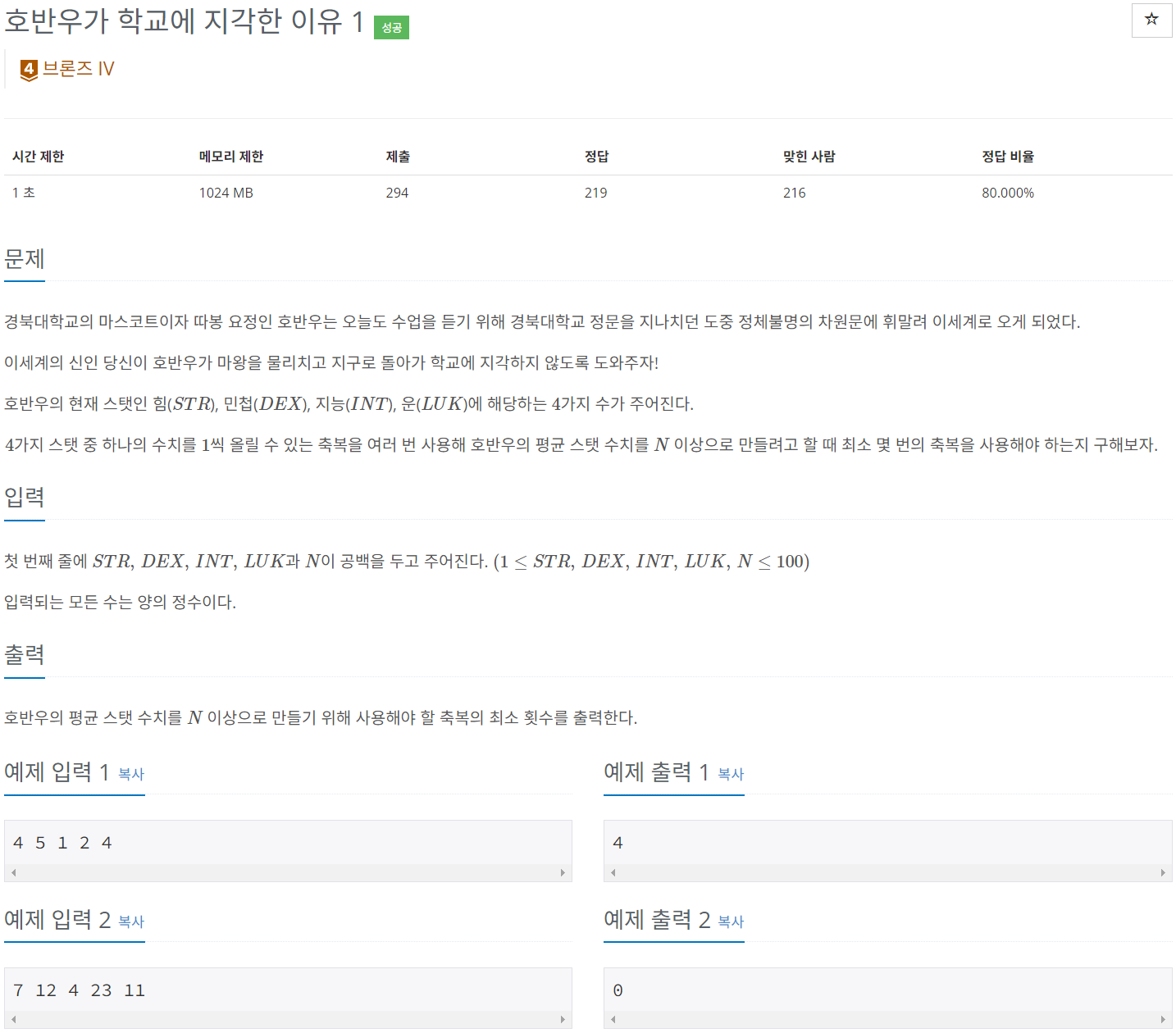 백준 BAEKJOON 30468번 호반우가 학교에 지각한 이유 1 [PYTHON/파이썬]