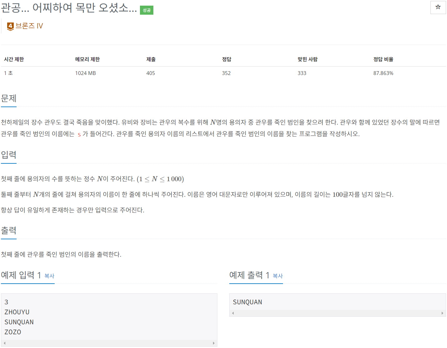 30501번: 관공... 어찌하여 목만 오셨소...
