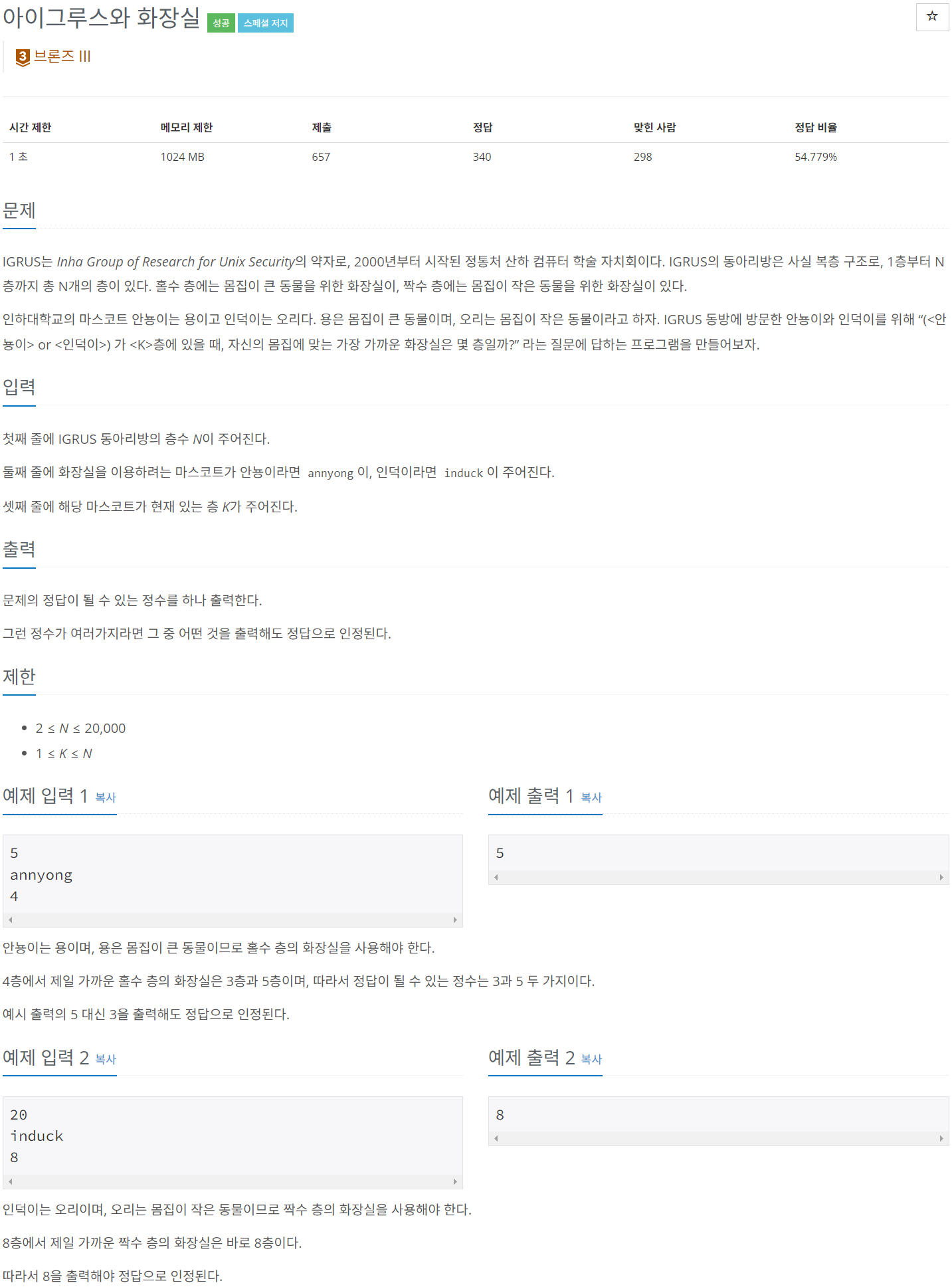 백준 BAEKJOON 30642번 아이그루스와 화장실 [PYTHON/파이썬]