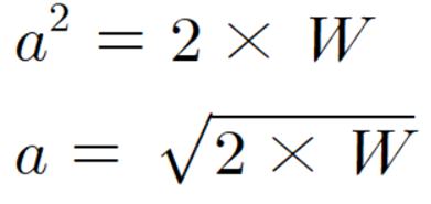 사각형의 한 변이 a라고 했을 때 W를 구하는 식은 아래와 같다.