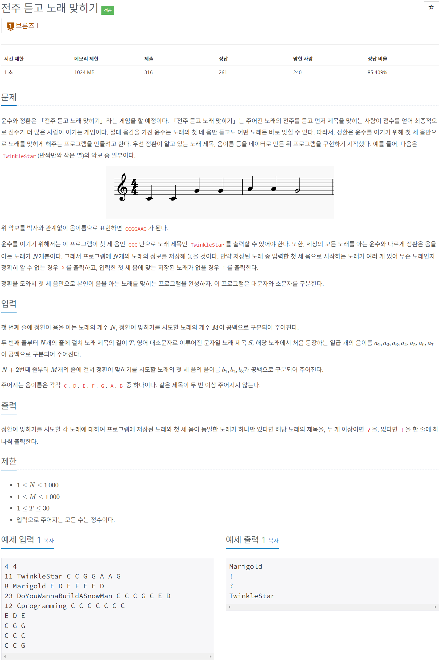 백준 BAEKJOON 31562번 전주 듣고 노래 맞히기 [PYTHON/파이썬]