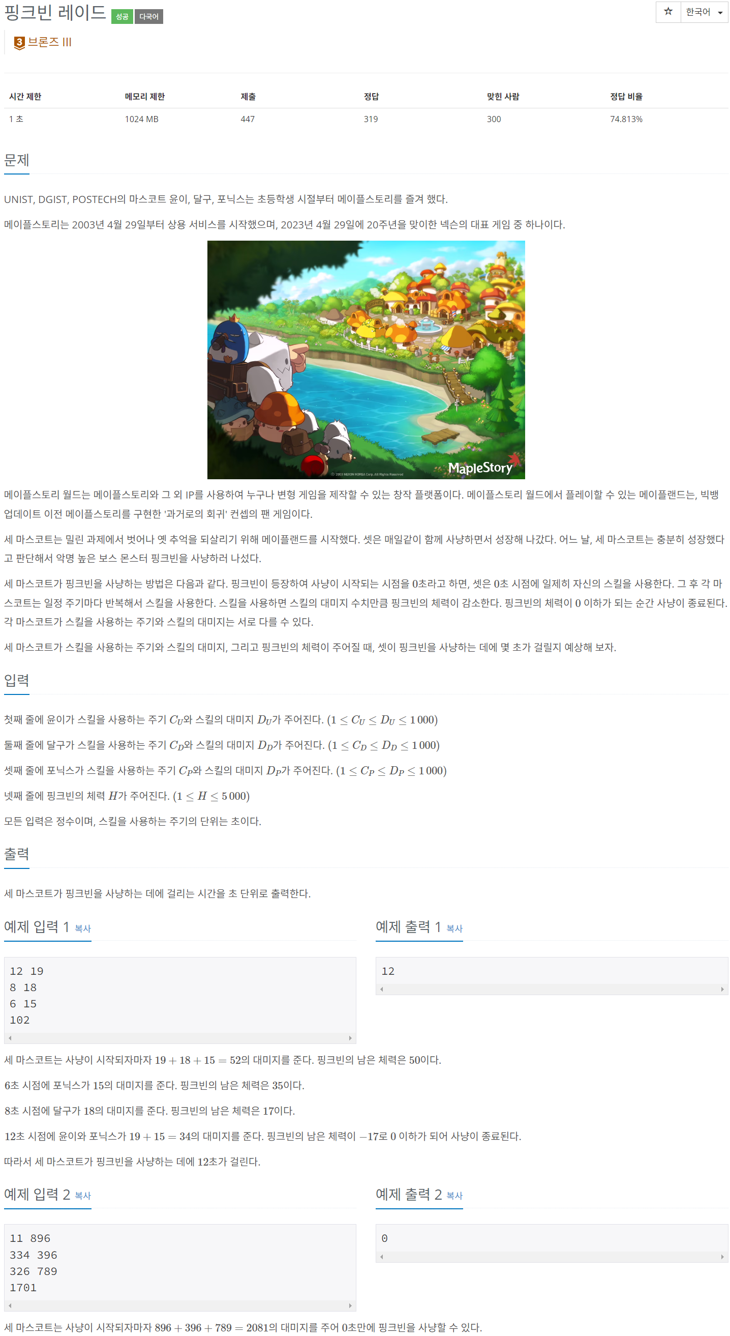 백준 BAEKJOON 31712번 핑크빈 레이드 [PYTHON/파이썬]