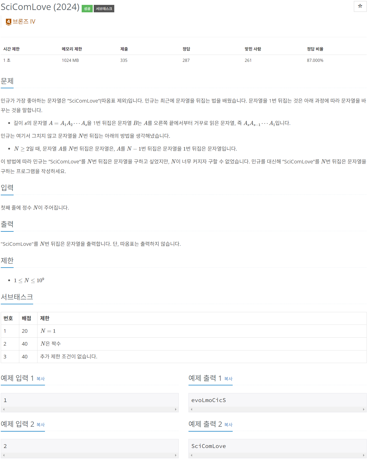 백준 BAEKJOON 31746번 SciComLove (2024) [PYTHON/파이썬]