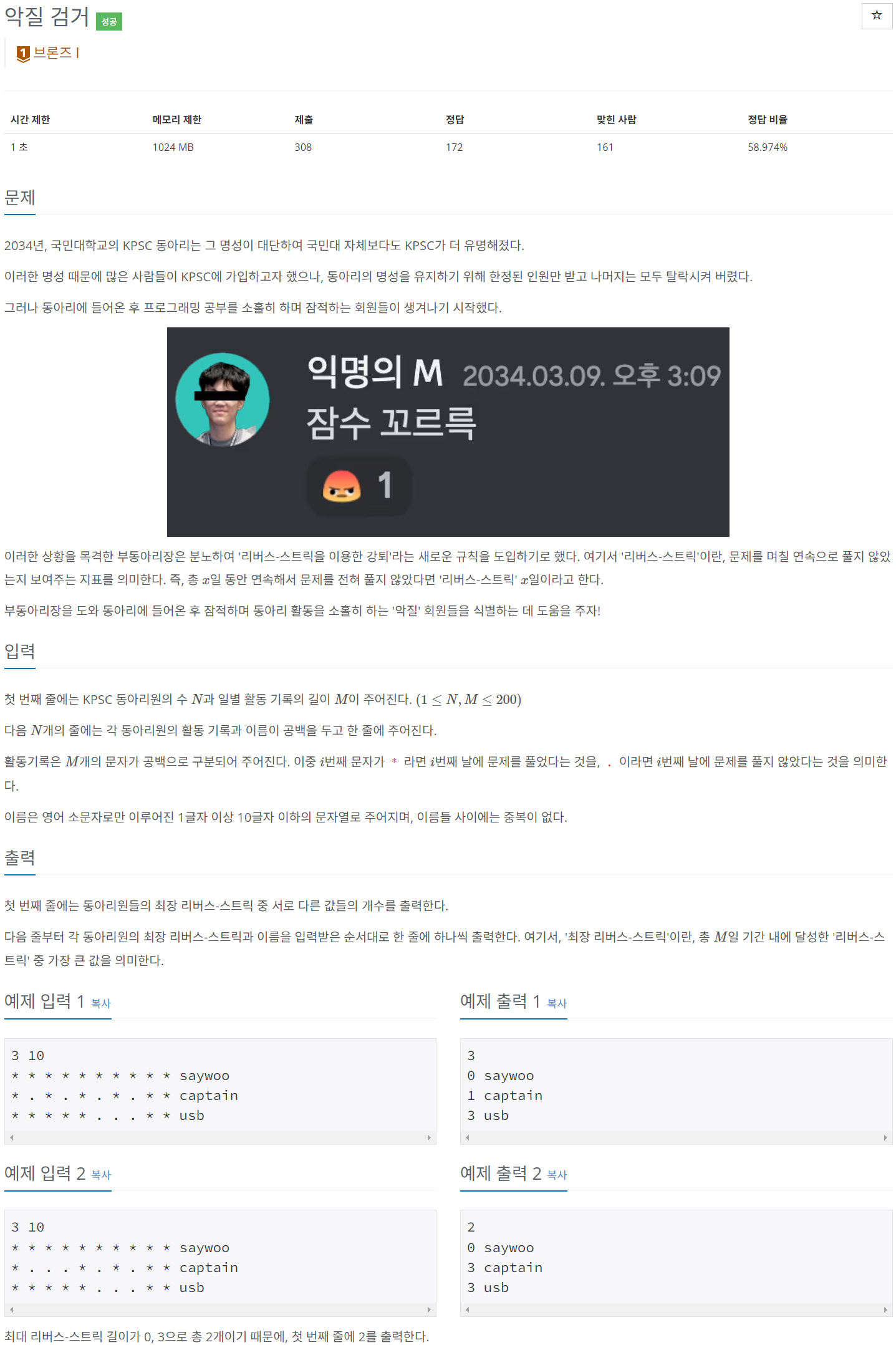 KPSC_List.append([maxStreak, name]) # 최장 리버스-스트릭과 이름을 저장