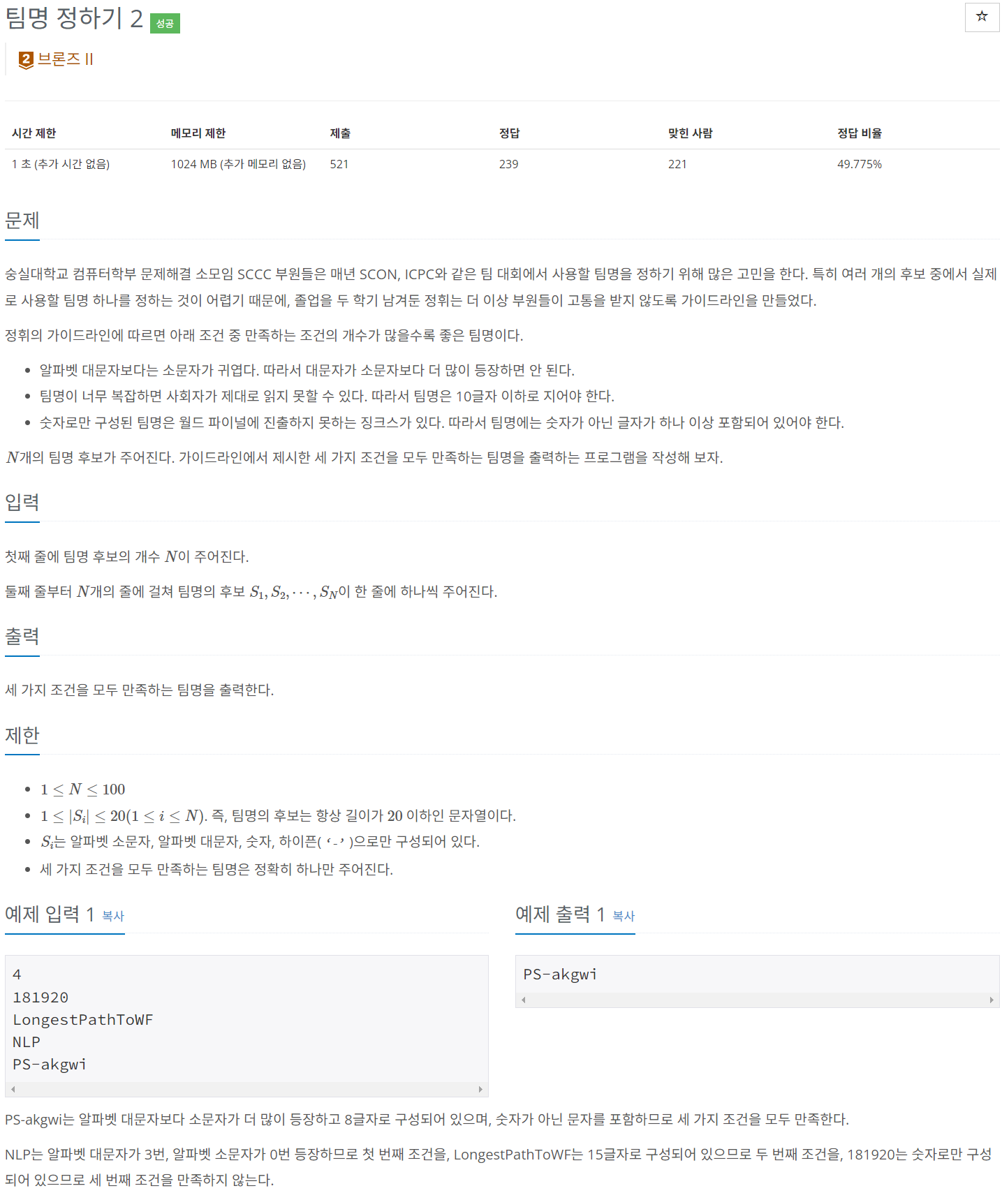 백준 BAEKJOON 31832번 팀명 정하기 2 [PYTHON/파이썬]