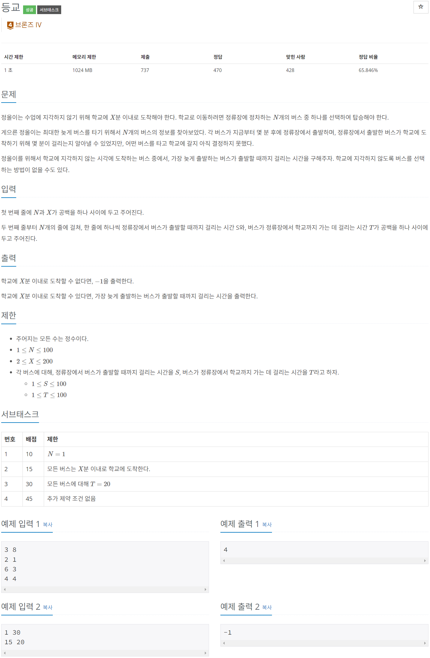 백준 BAEKJOON 31962번 등교 [PYTHON/파이썬]