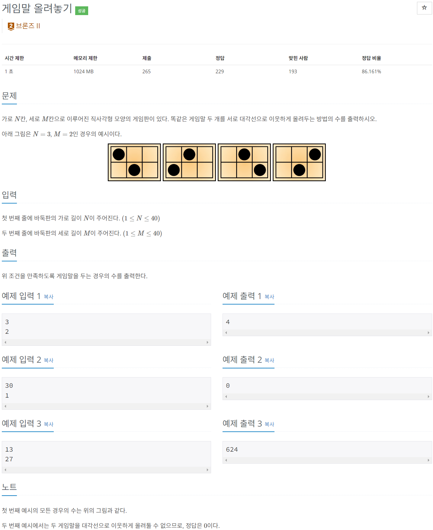 결과적으로는 가로 길이와 세로 길이 중 하나라도 1이면 경우의 수가 0이고