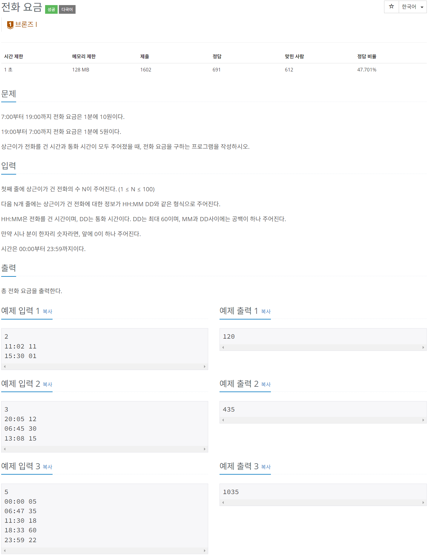 백준 BAEKJOON 3226번 전화 요금 [PYTHON/파이썬]
