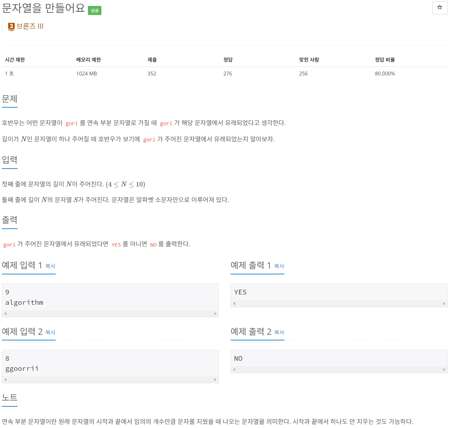 문제 속 문자열 "gori"가 문자열 S에 있는지 확인하면 된다.