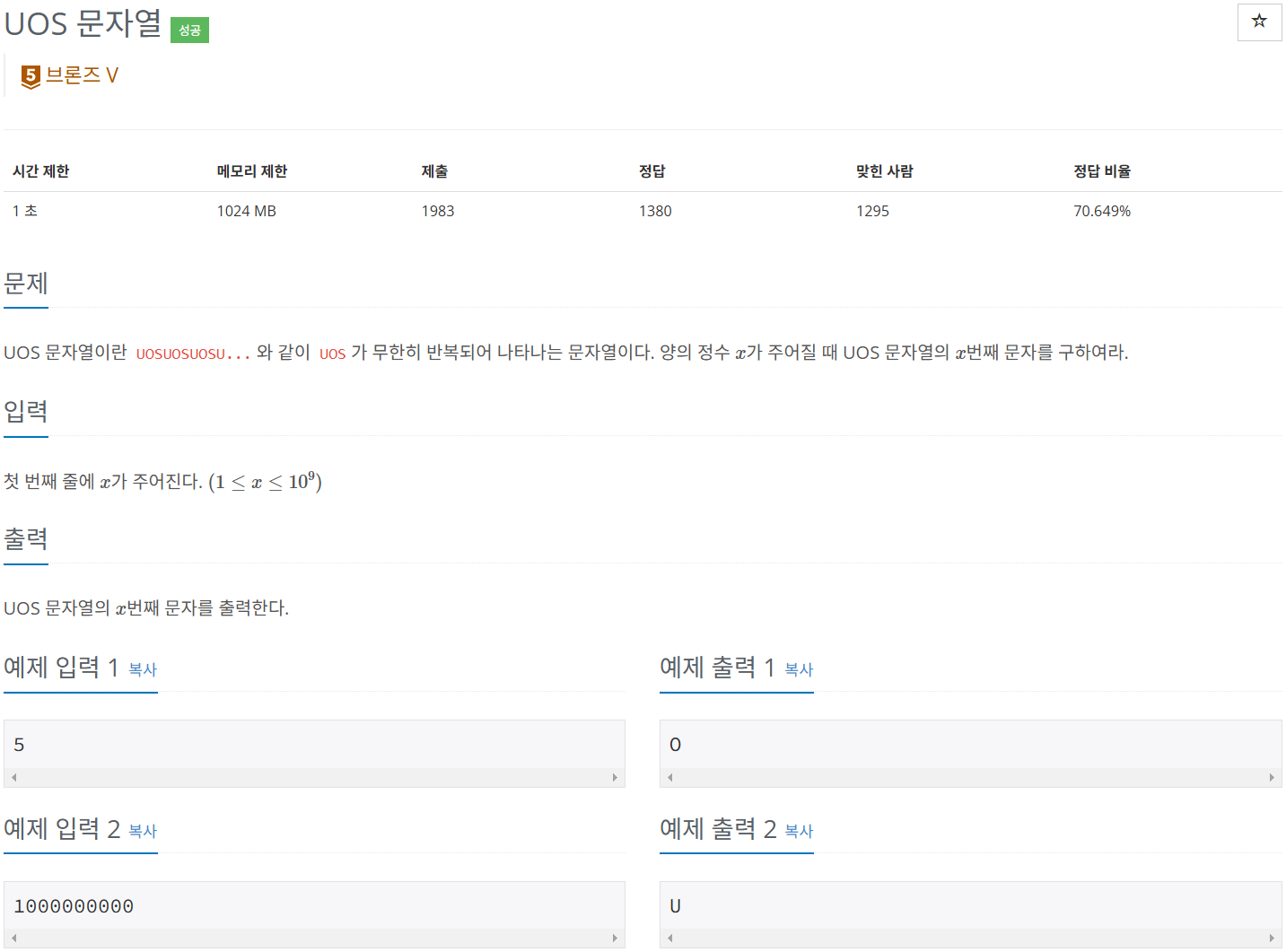 백준 BAEKJOON 32929번 UOS 문자열 [PYTHON/파이썬]