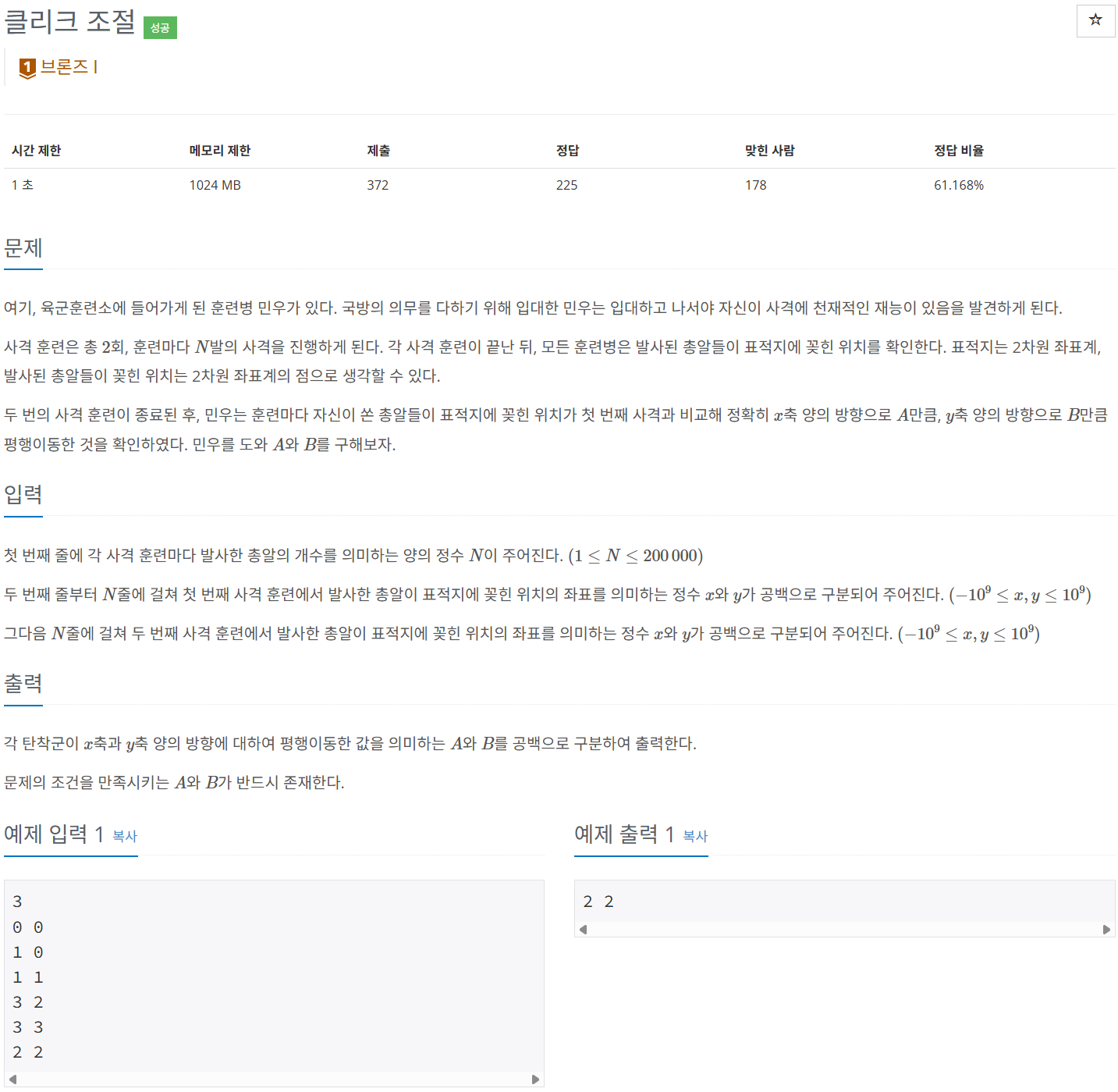 첫 번째 사격의 좌표와 두 번째 사격의 좌표를