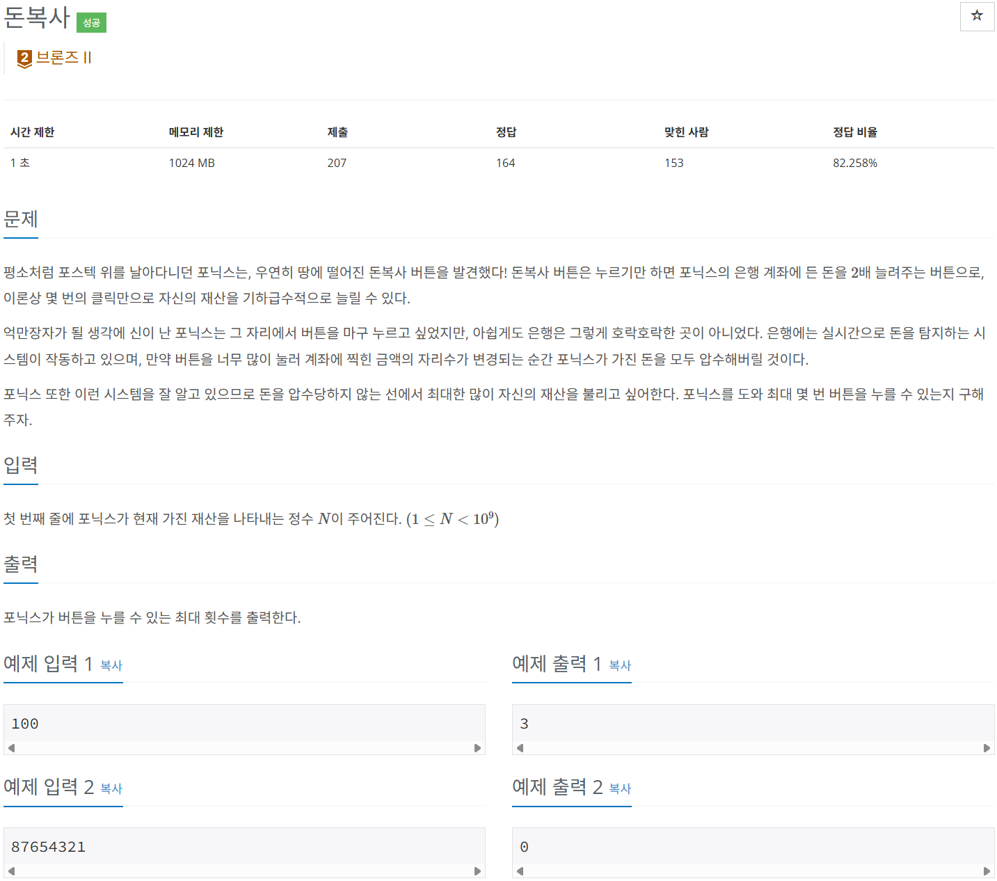 while 문을 통해 N을 2배로 곱해주는 작업을 했다.