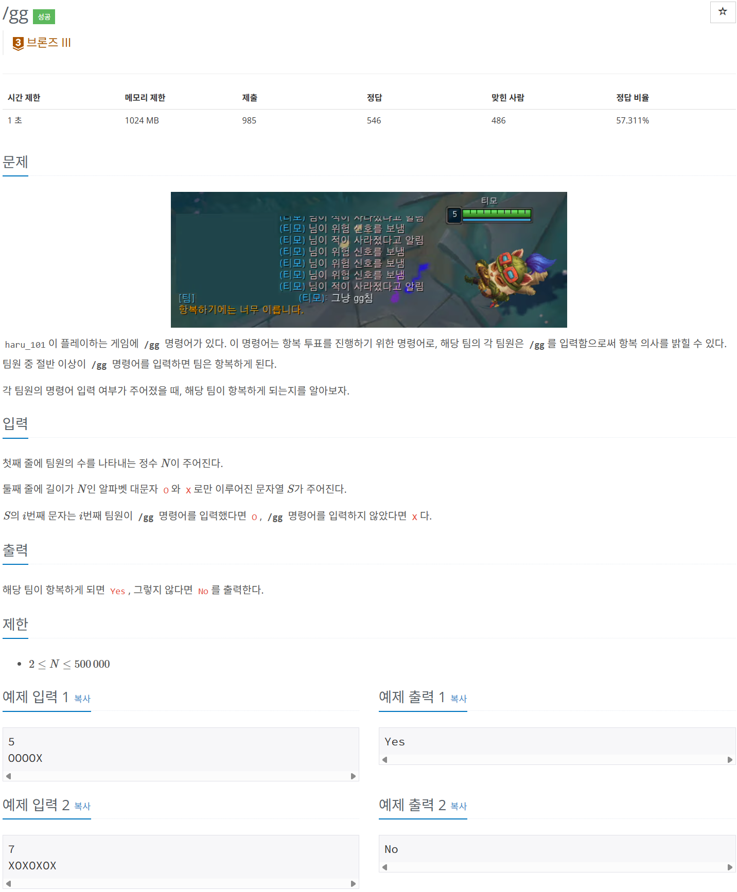 팀이 항복을 할 수 있다면 Yes를, 그렇지 않다면 No를 출력하였다.