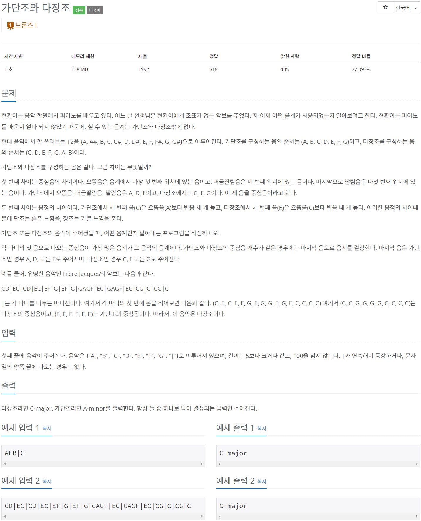 백준 BAEKJOON 5211번 가단조와 다장조 [PYTHON/파이썬]