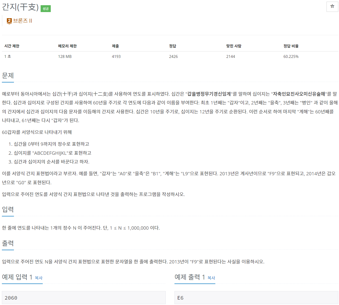 백준 BAEKJOON 7572번 간지(干支) [PYTHON/파이썬]