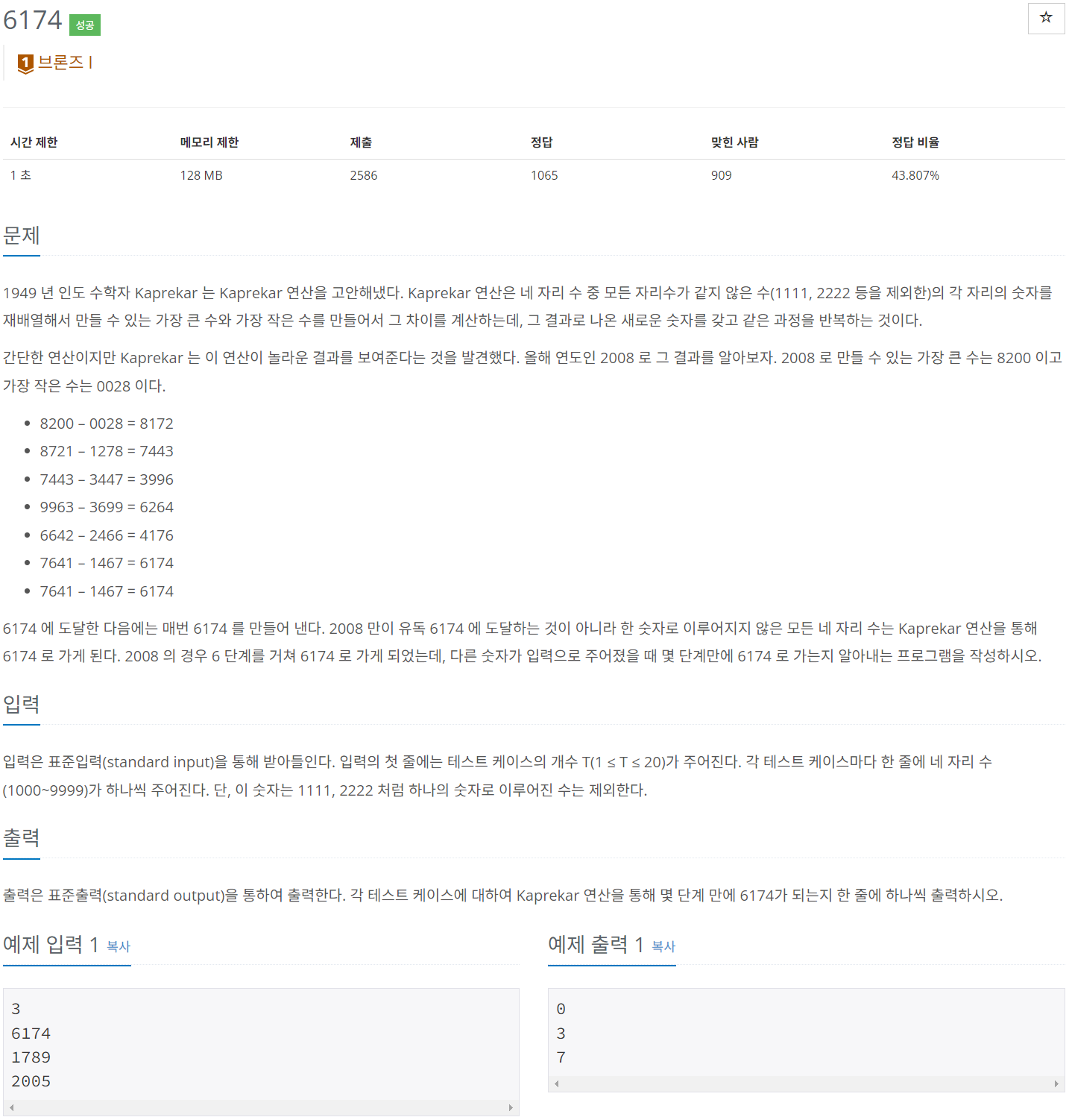 백준 BAEKJOON 9047번 6174 [PYTHON/파이썬]