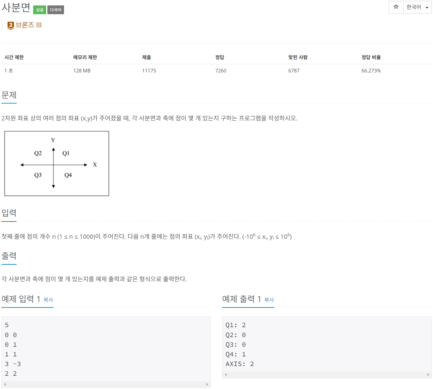 백준 BAEKJOON 9610번 사분면 [PYTHON/파이썬]